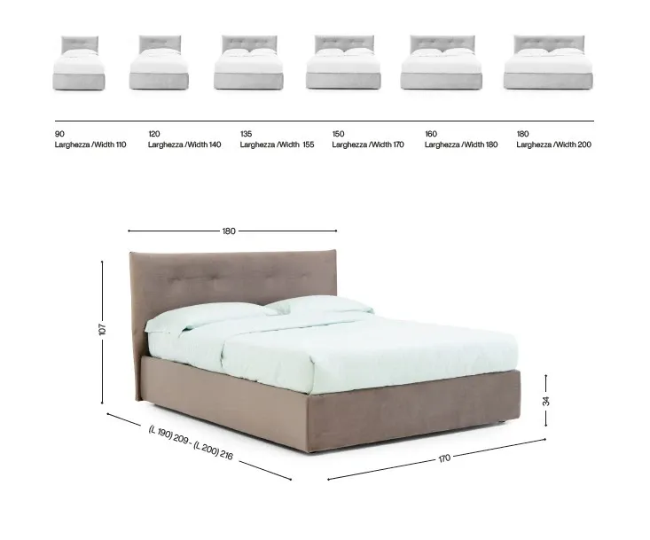 Che sia singolo, matrimoniale o a una piazza e mezza, il letto deve offrire ad ognuno il relax totale, lungo e profondo: quindi è essenziale valutare con attenzione le svariate dimensioni disponibili; se vuoi una camera che ti assicuri del buon sonno, questo letto modello