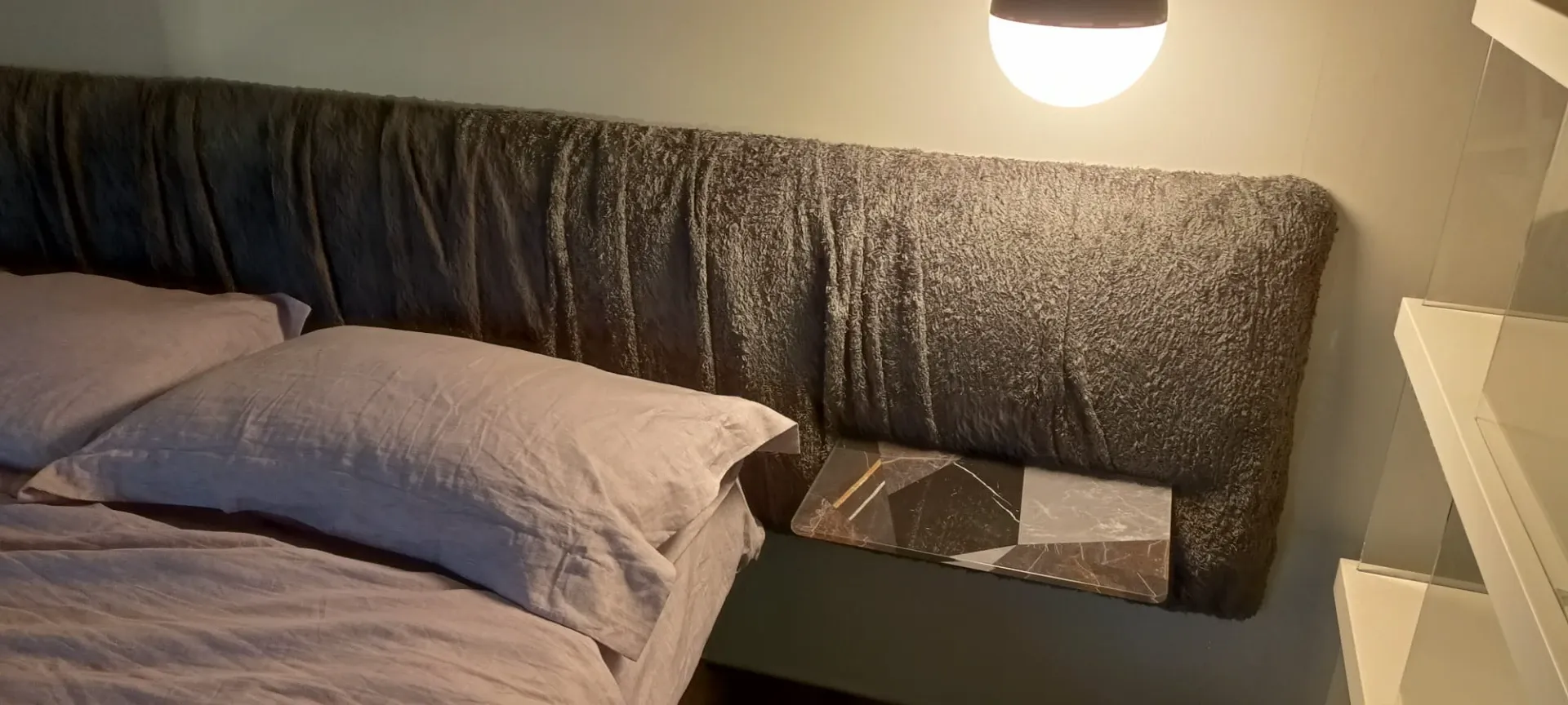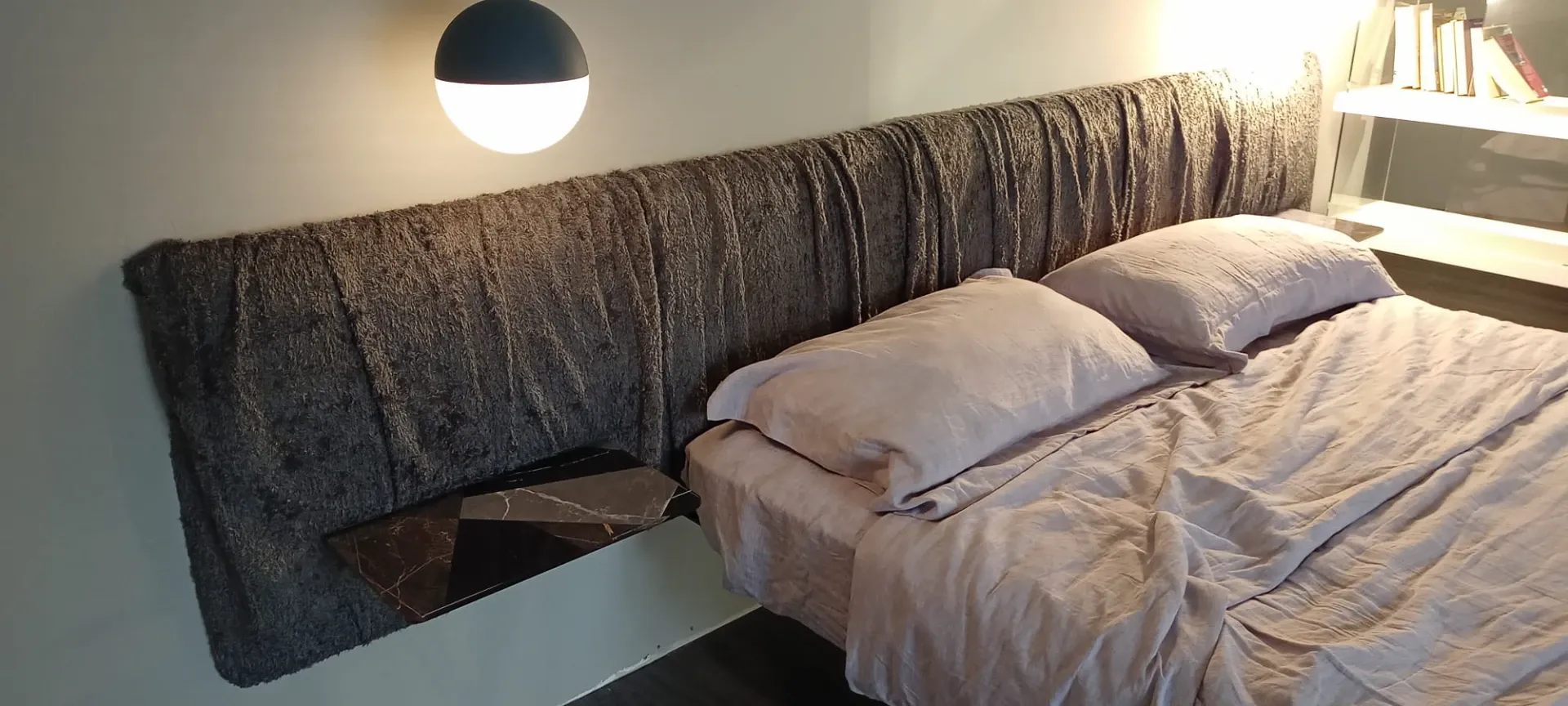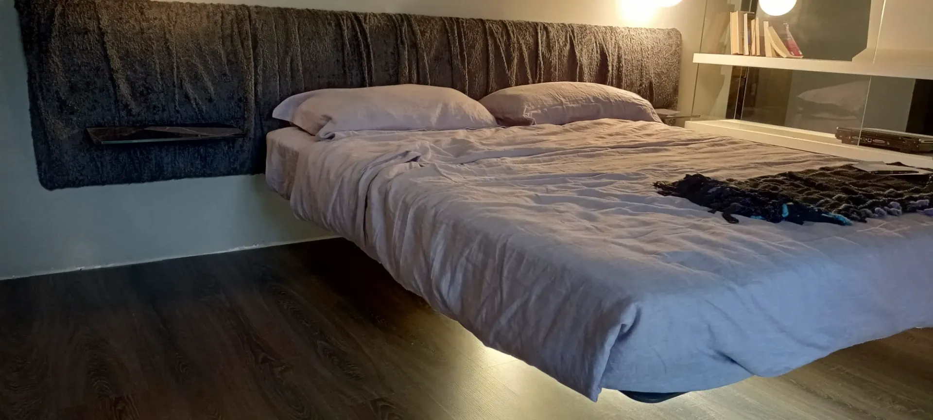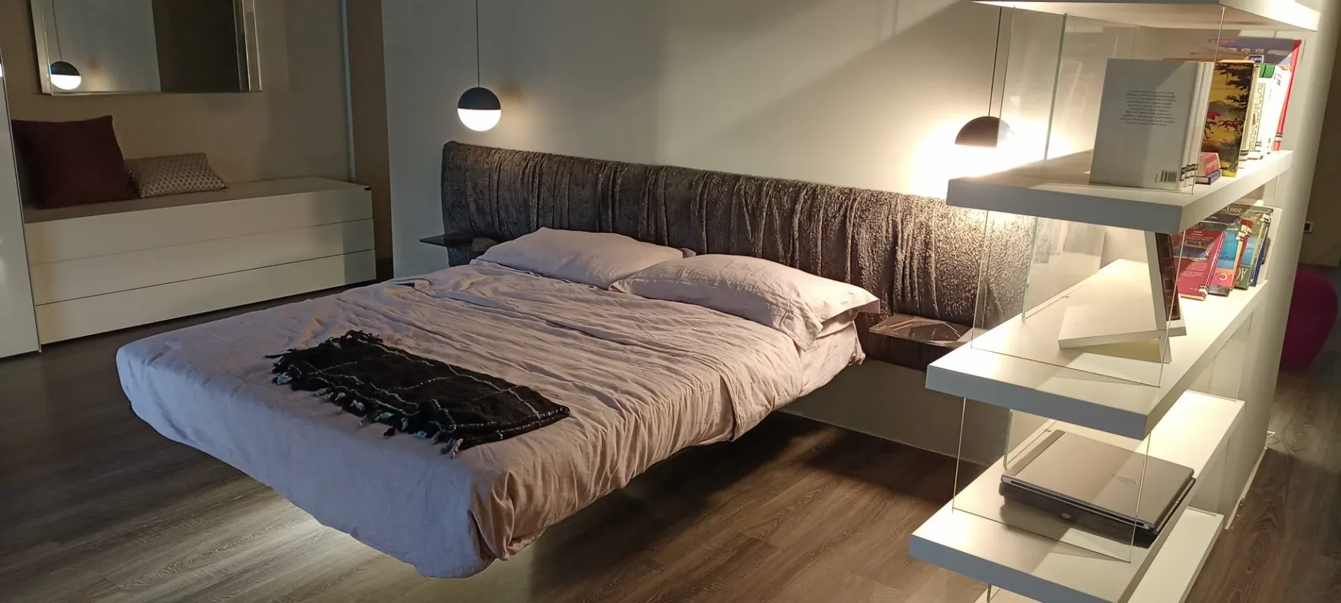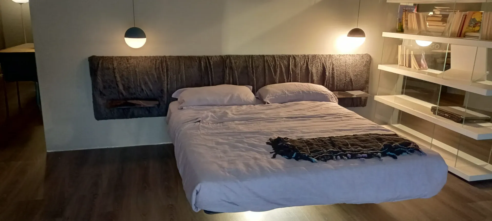 Il letto Fluttua del marchio è design, per cui va abbinato ai restanti pezzi d'arredo della camera da letto seguendo questa peculiare linea stilistica.