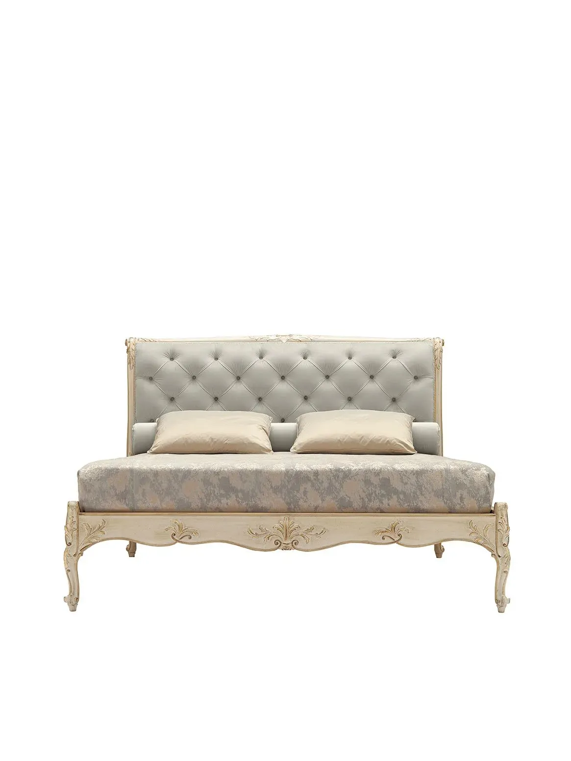 GRIFONI SILVANO LETTO COMPLETO DI GIROLETTO , BIANCO ANTICO, MECCA E COLORE TORTORA , IMB. CAPITONE', CAT. 2 CM. 187X222X127H COMPLETO DI RETE L. 170X206