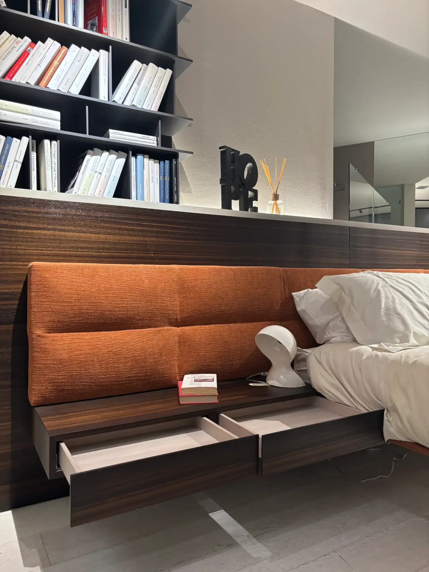 I letti possono essere coordinati ai comodini, o potremo scegliere di abbinare finiture o materiali appositamente contrastanti: nella zona notte sono i protagonisti dell’arredamento e il