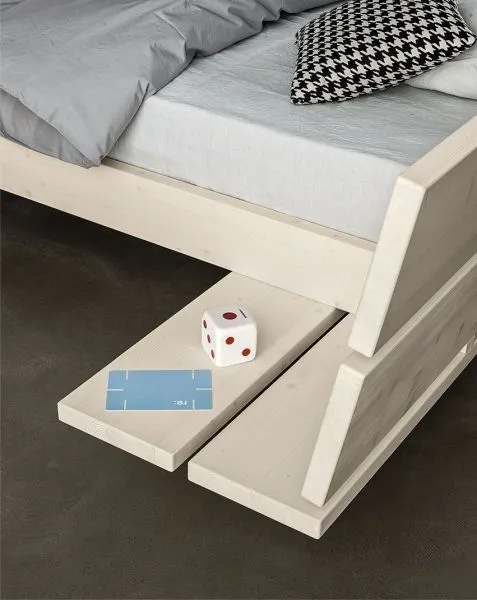 Letto singolo interamente in legno massello di abete . Il legno massello naturale rende ogni mobile un pezzo unico. Tutto il prodotto é made in Italy con il massimo controllo della qualità sia sulla lavorazione artigianale che sul materiale. La particolarità di questo letto é data dal prolungamento del supporto in legno per ricavare un pratico comodino. Per il letto singolo per rete 90 x 200 le misure del letto sono l. 156 h 84,5 p. 219 (l. Pediera 100) Il letto é disponibile anche per rete 120 x 200 – 1 piazza e mezza –con maggiorazione di € 100,00 e le misure sono l. 186 h 84,5 p. 219 ( l. Pediera 130).