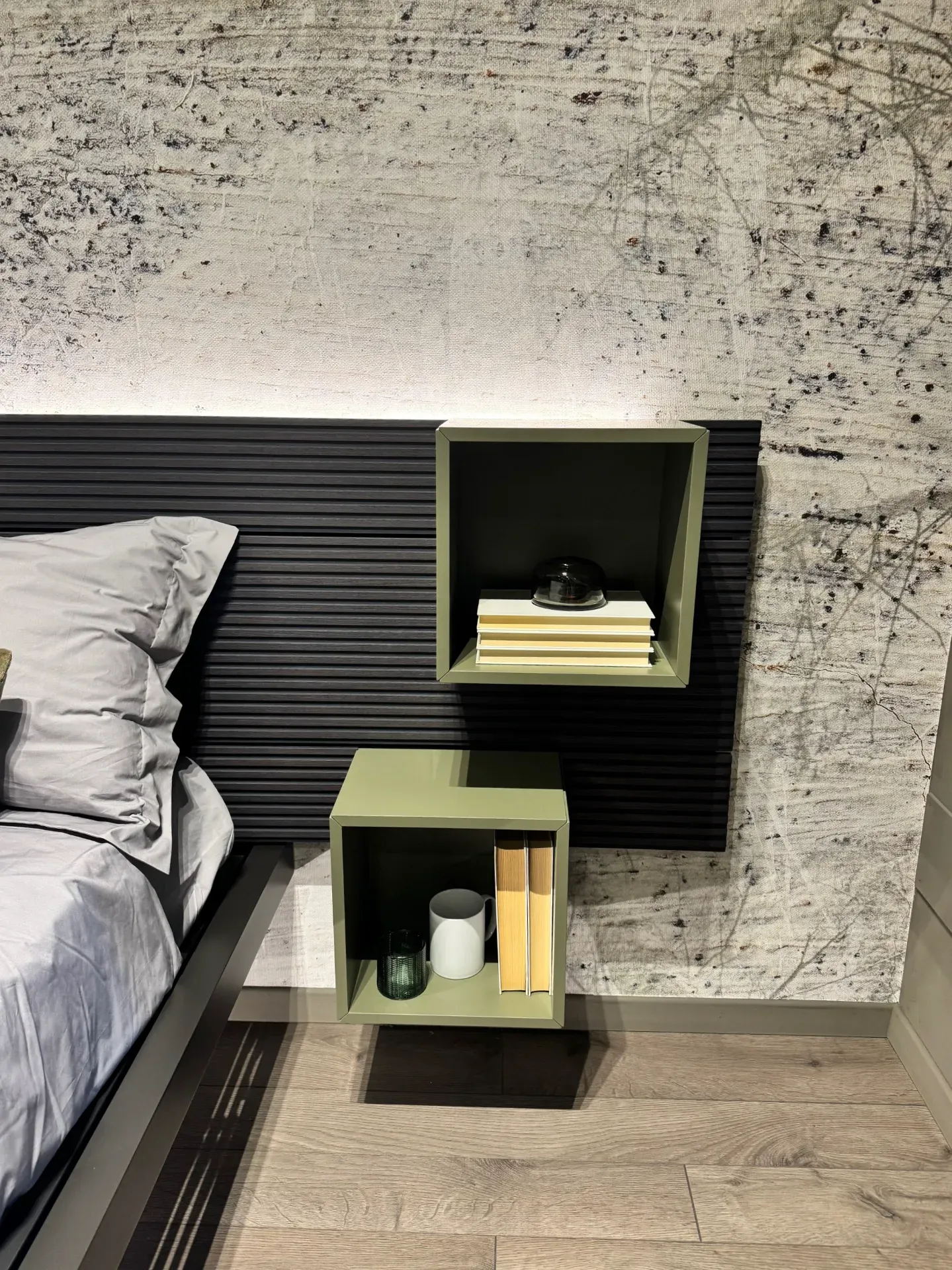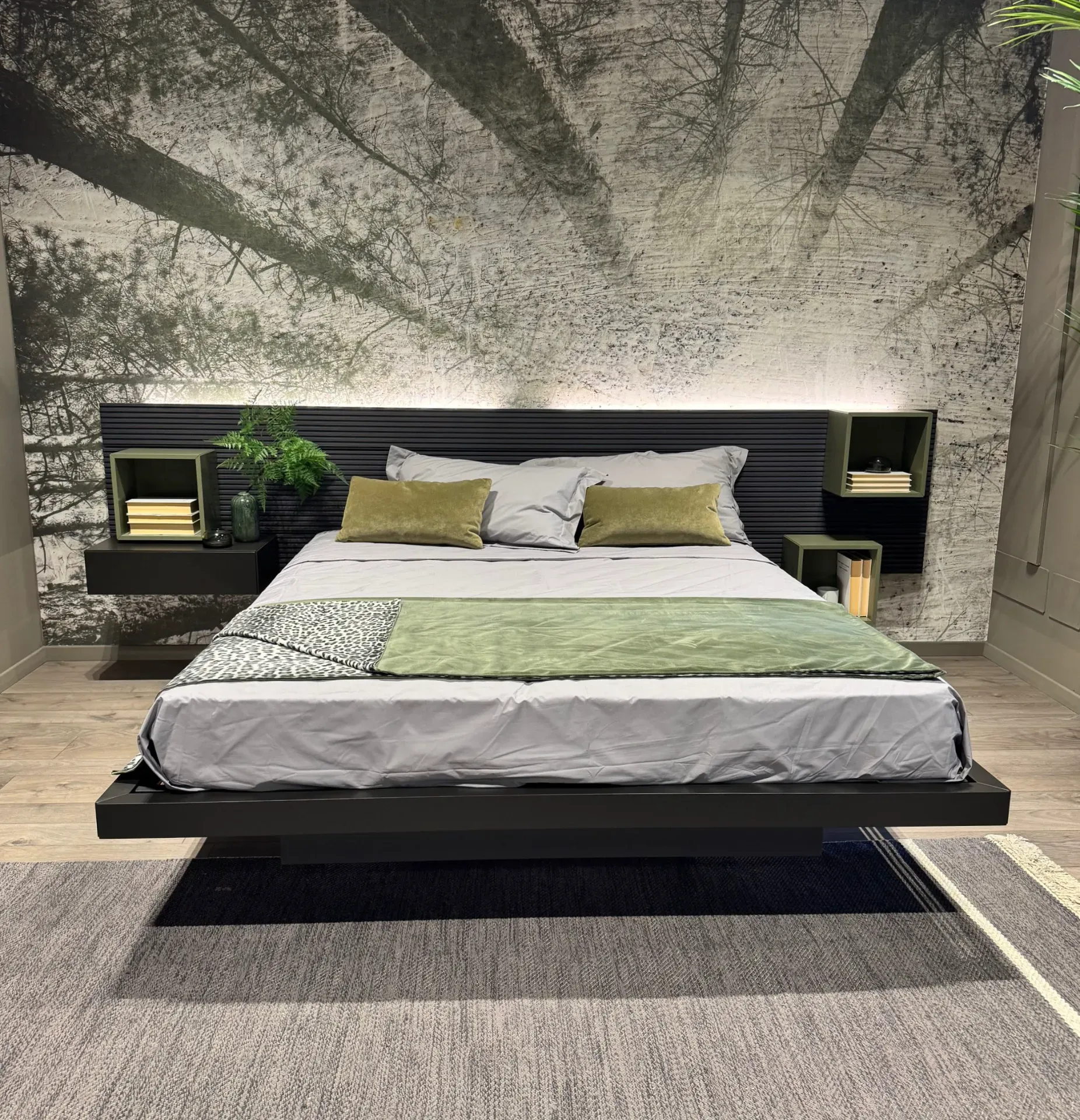 I letti possono essere abbinati ai comodini, oppure si può decidere di affiancare finiture o materiali appositamente contrastanti: nella camera sono i protagonisti dell’arredo e il letto King size