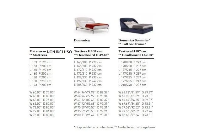 Il letto si presenta con una struttura interna tamburata in elementi ricavati dal legno e in massello di legno con imbottitura in poliuretano espanso. Il rivestimento esterno ่ sfoderabile. . Il letto viene fornito con piedi e longoni in acciaio. Eventualmente disponibili a richiesta in laccato opaco bianco e nero e finiture in metallo opaco e lucido (bronzo champagne, cromo e titanio). . IL PREZZO DI COPERTINA SI RIFERISCE AD UN LETTO DI MISURE 160X190 CON RIVESTIMENTO IN TESSUTO A SCELTA DI CATEGORIA A.