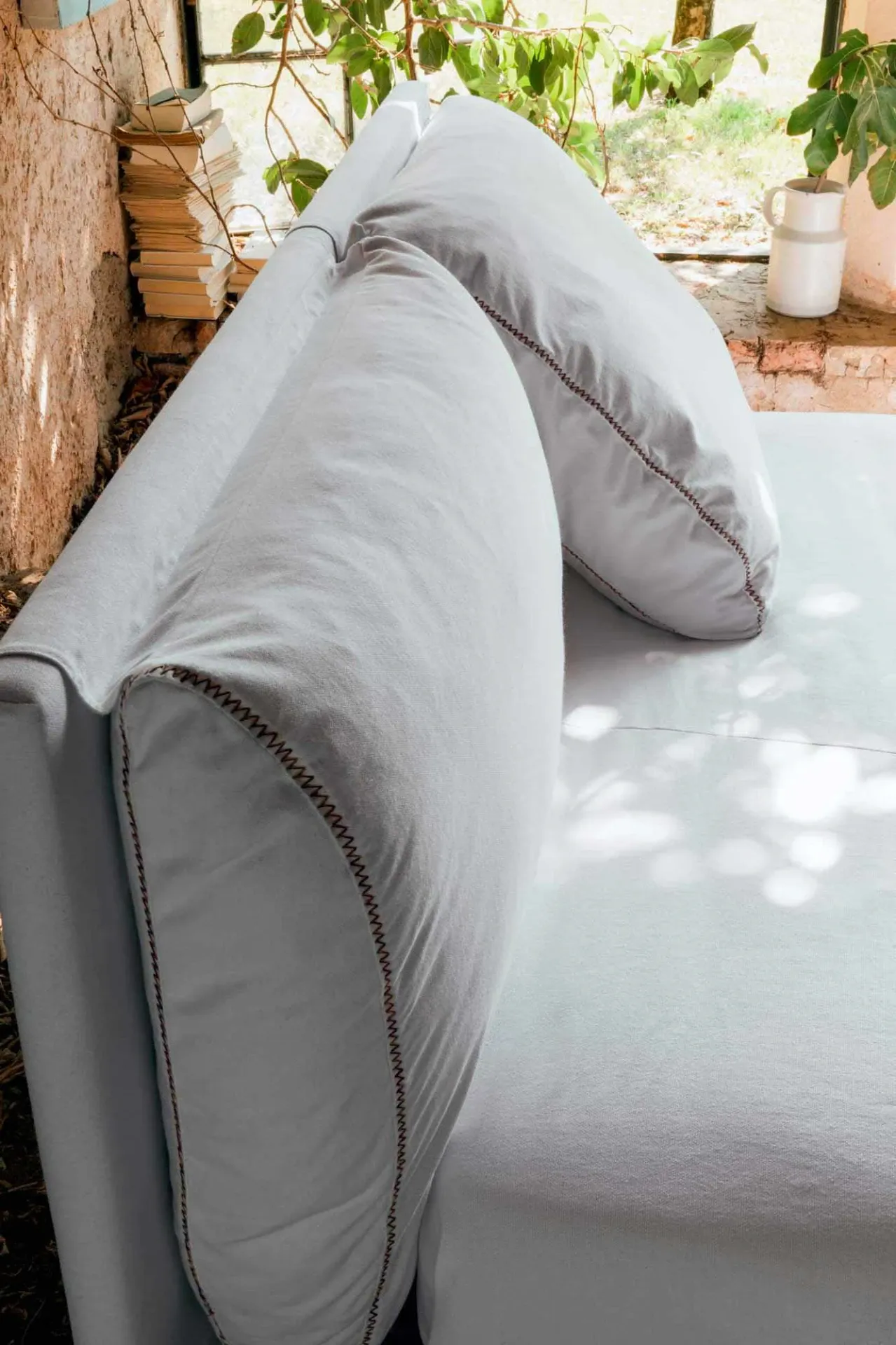 L elemento distintivo di questo modello è la testata dotata di cuscini reclinabili indipendenti, progettati per offrire un supporto ergonomico ottimale per la lettura o il riposo, unendo estetica raffinata e massima funzionalità. La cura artigianale si esprime nella personalizzazione delle cuciture, realizzabili in tinta per un effetto sobrio o a contrasto per valorizzare le linee sinuose e i volumi del letto.