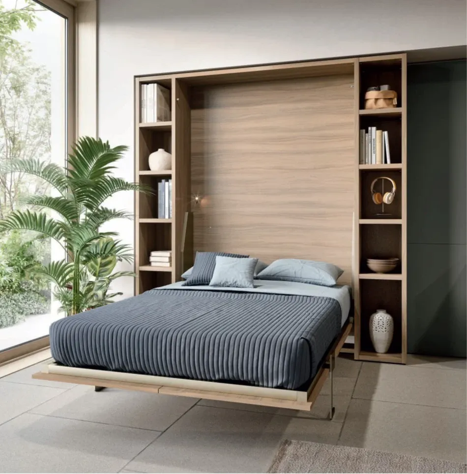 Le proposte di letti che vendiamo sono di ottima qualità, non solo per il design, ma anche per ergonomia e sicurezza; i letti della firma, come questo modello in legno, sono sempre costruiti con materiali di prima scelta che si prestano a completare dal punto di vista estetico locali di ogni genere garantendoti, contemporaneamente, resistenza negli anni e estremo comfort. Le diverse misure disponibili per un letto Battistella sono disegnate per adattarsi alle esigenze più disparate, tra singoli, matrimoniali ed a una piazza e mezza: questo modello Letto a scomparsa con libreria è matrimoniali; i letti sono componenti imprescindibili per concretizzare il tuo progetto per la camera da letto e garantirti il relax totale a fine giornata, proprio per questo è imprescindibile valutare pure le varie misure disponibili. Letto Battistella di grande qualità in offerta outlet sul nostro Outlettrasporto escluso per questa proposta. Il letto Letto a scomparsa con libreria della firma è moderni, per tale ragione deve essere coordinato ai restanti pezzi d'arredo della camera seguendo questa peculiare linea stilistica.
