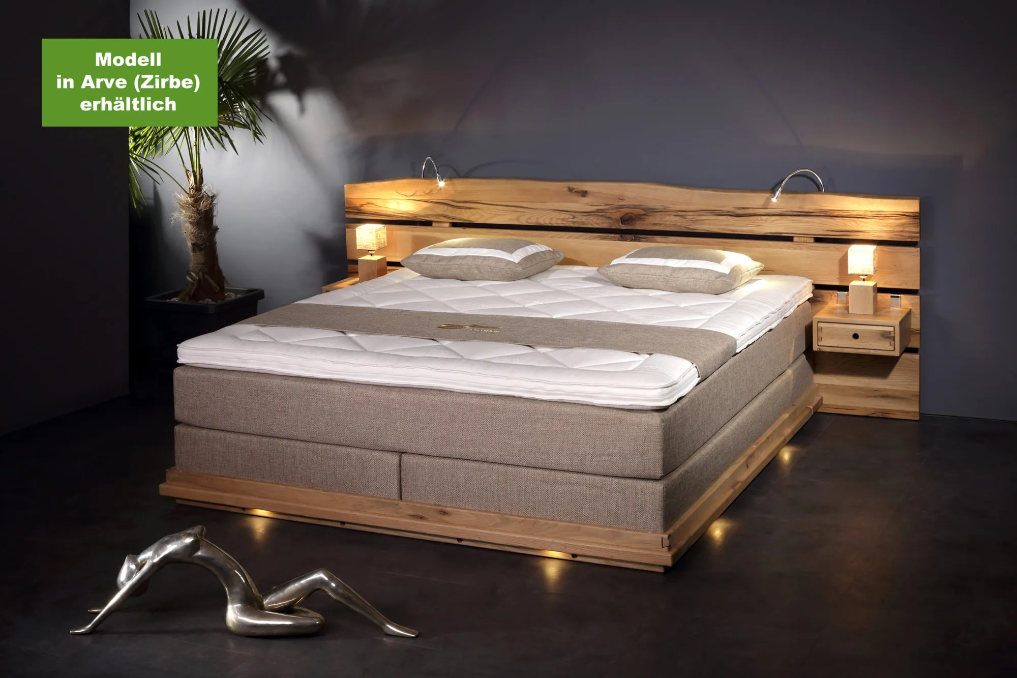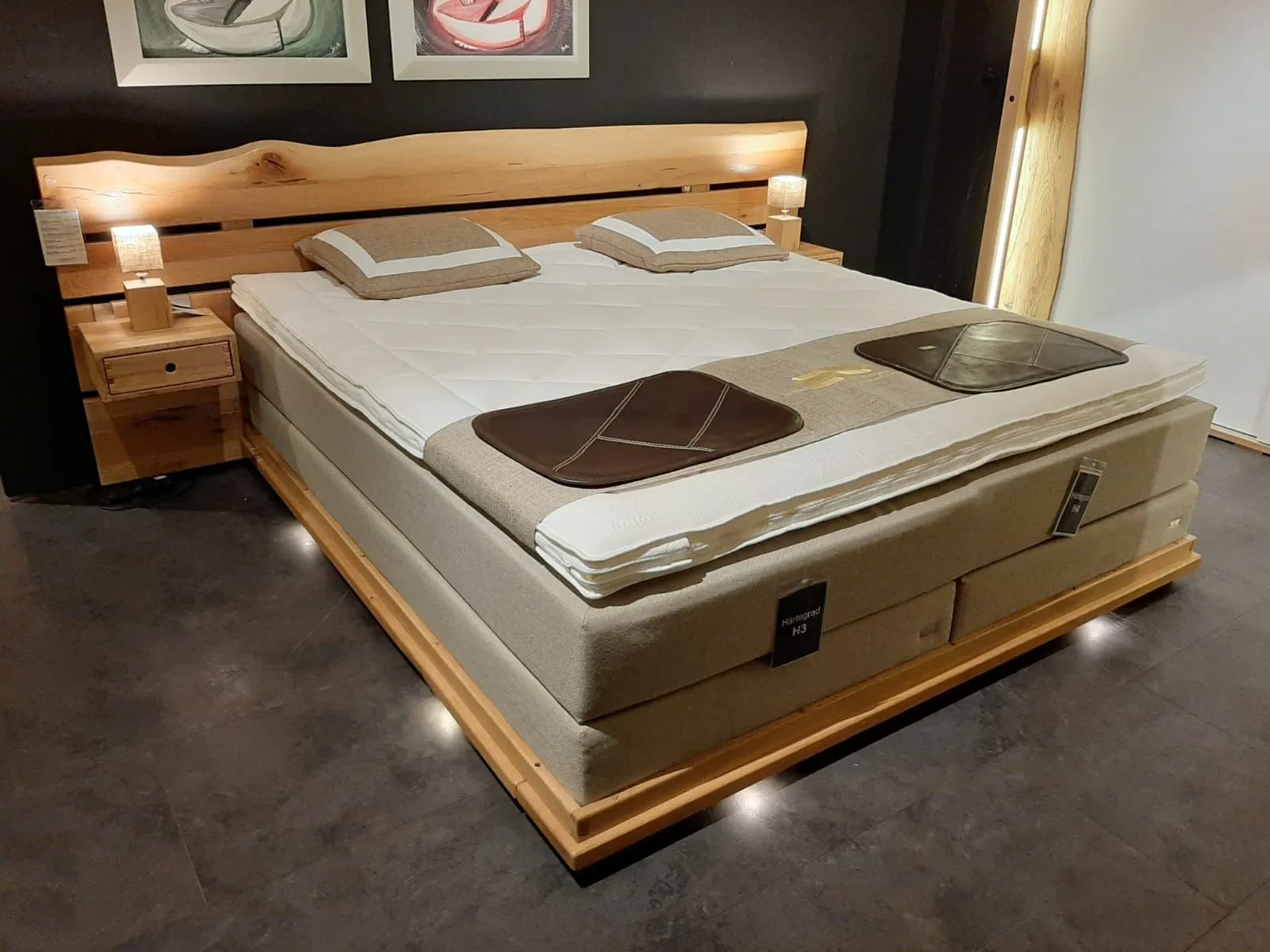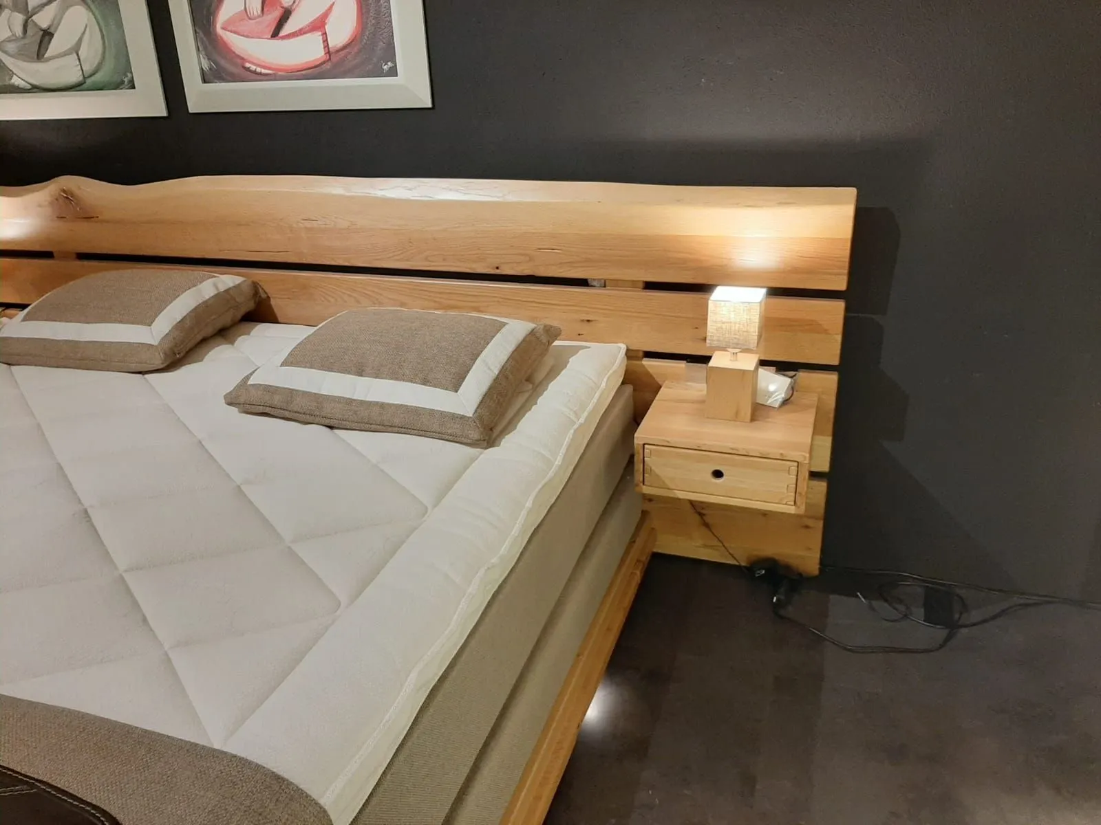 Bellissimo letto con sistema boxspring per una qualità del dormire inimitabile. La struttura del letto è formata da: -testiera in rovere palustre naturale con effetto scorniciato da 4cm di spessore -podio in rovere palustre che contiene il sistema materassi da 160x200 -un materasso a molle che fa da funzione di rete 160x200 -un altro materasso a molle insacchettate 160x200 della ditta Manifattura Falomo -un topper in soia bio memory foam da 3 cm di spessore Ogni letto si può ordinare con sostegni differenziati per soddisfare al meglio le esigenze della coppia. Effettuiamo consegne e montaggi in tutta Italia. Compilare in form sottostante per ricevere ulteriori informazioni.