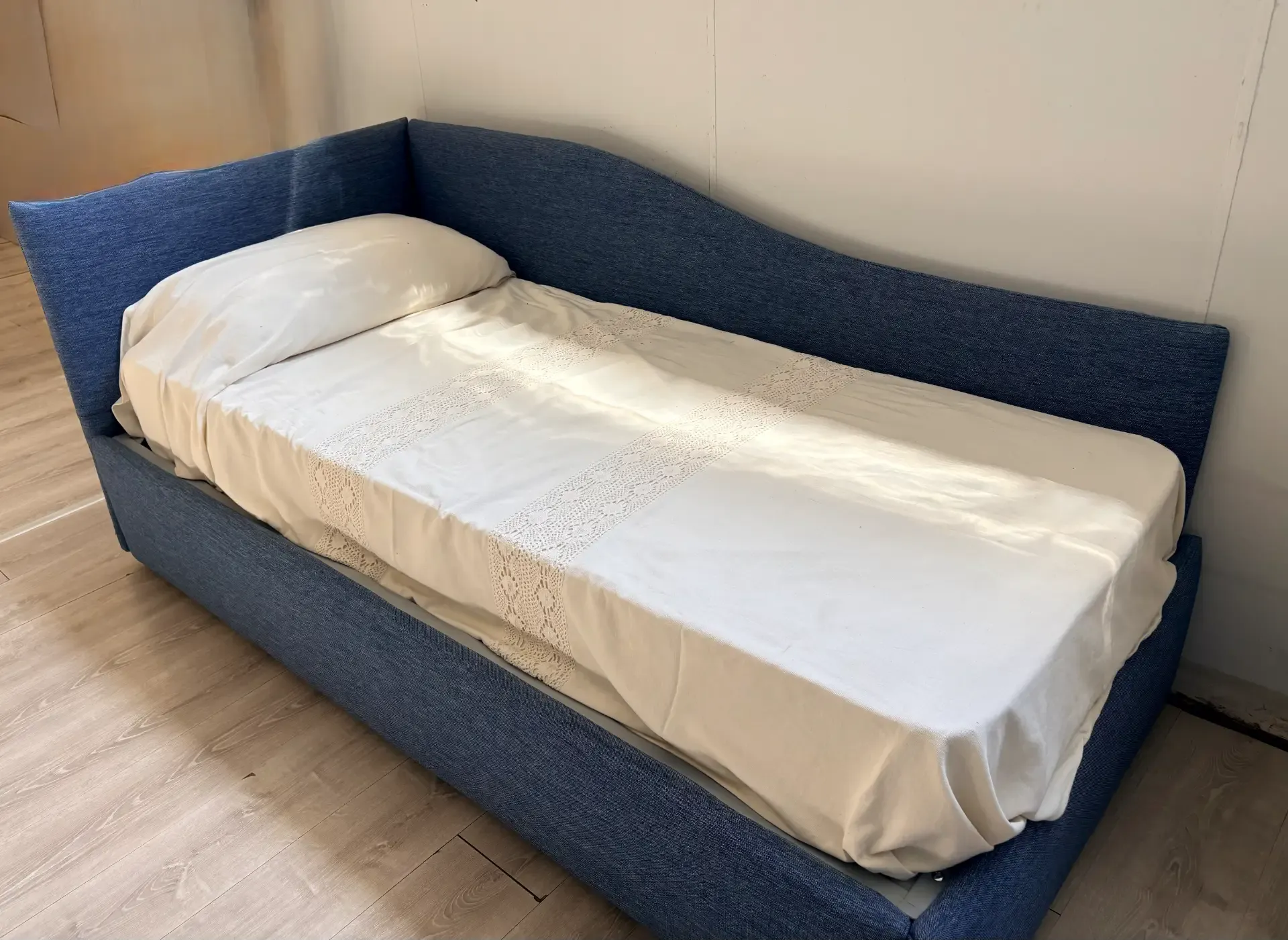 Letto Samoa singolo Enjoy Twice con spalliera sagomato con letto estraibile sotto completo di reti a doghe esclusi materassi .