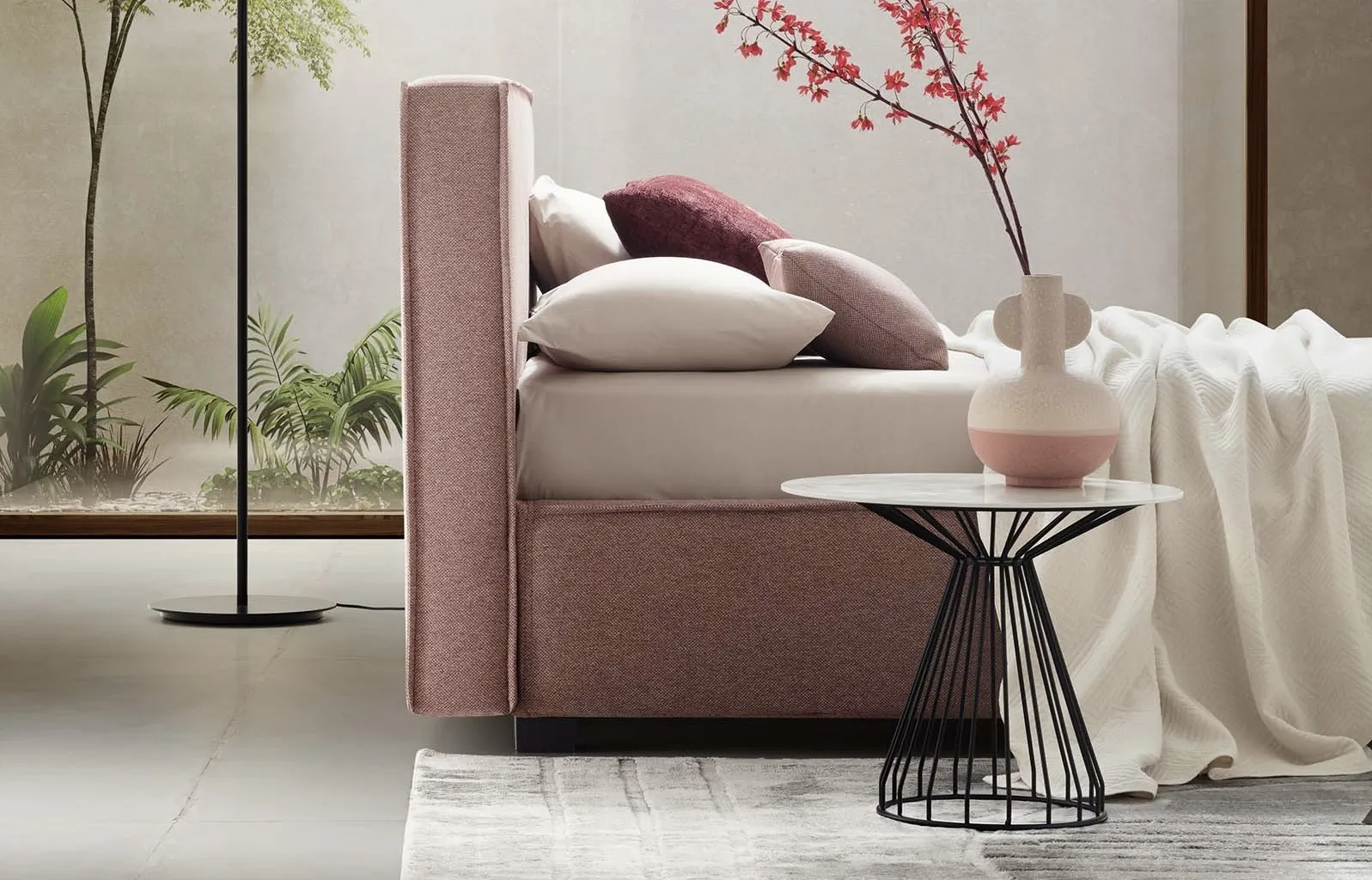 Lavorando sulla notevole ed evidente pulizia delle linee strutturali, la cui geometria è sottolineata dalla salda cucitura a vivo, in questo letto contenitore è il tessuto a dettare le regole. Dalla fibra naturale e resistente, il rivestimento di Ipanema non solo veste gli elementi della composizione ma permette loro di respirare.