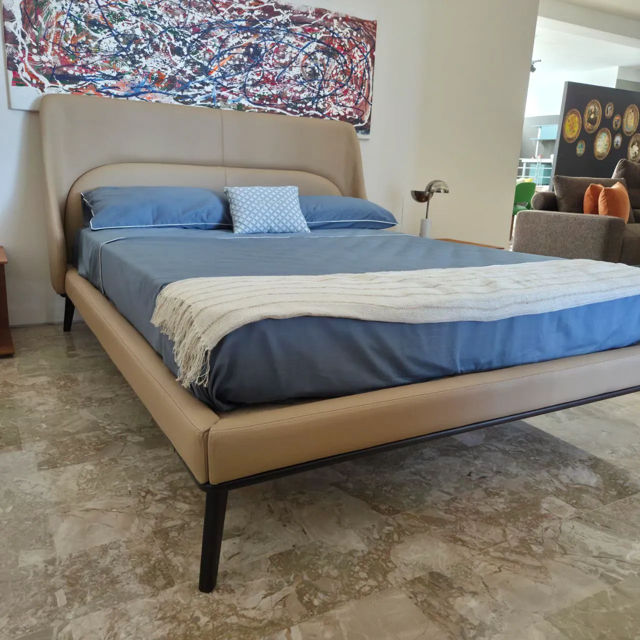 La qualità dei materiali utilizzati è evidente nella finitura in pelle, che non solo garantisce una lunga durata nel tempo ma conferisce anche un aspetto lussuoso al prodotto. Sebbene il letto non disponga di contenitore integrato, la sua struttura leggera e slanciata ne facilita l'inserimento in spazi diversi senza appesantire l'ambiente.