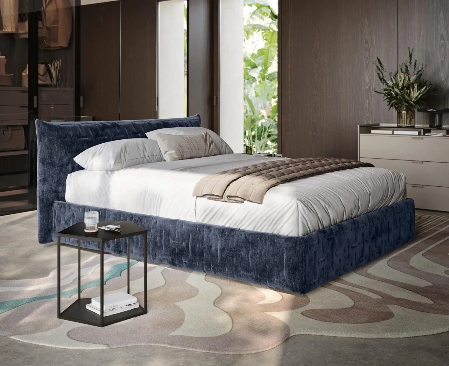Letto matrimoniale imbottito con box-contenitore con il sollevamento verticale della rete a doghe. Viene rivestito in tessuto trapuntato nella variante di colore: You/41. E' disponibile nei diversi rivestimenti a scelta del campionario. E' disponibile anche nella versione: King-Size con la rete da cm.180 larghezza. Le sue dimensioni esterne d'ingombro sono di: cm.191 larghezza)misura effettiva della testiera)x cm.226 profondità x cm.101,7 altezza della testiera. E' un prodotto realizzato con materiali di alta qualità,caratterizzato dal design innovativo ed al contempo molto raffinato,che può facilmente integrarsi in qualsiasi contesto d'arredo,anche di gusto antico,come elemento neutro ed indipendente dell'ambiente medesimo. Il prezzo-promo è compreso del trasporto e del montaggio in tutte le Regioni d'Italia. Per qualsiasi informazione,potete contattarci,attraverso il nostro indirizzo di posta elettronica.