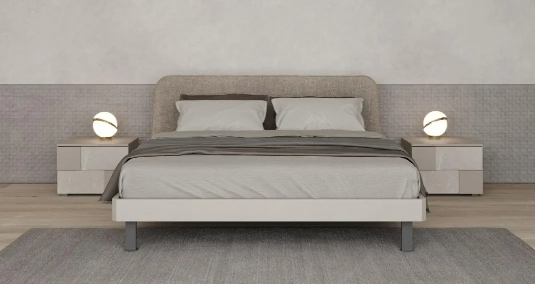 Letto-matrimoniale con testiera rivestita in tessuto cat.Sale e Pepe/503 con giroletto Laccato opaco colore: Fango,con piedi in ferro tondo colore: Ardesia. E' disponibile nei diversi rivestimenti a richiesta del campionario e nei diversi colori laccati a scelta del campionario(www.giessegi.it). Le sue misure esterne d'ingombro sono di: cm.205 larghezza(misura effettiva della testiera)x cm.212 profondità x cm.100 altezza della testiera(con rete da cm.160 x cm.190). E' disponibile anche con la rete a doghe da cm.160 x cm.200. E' disponibile anche nella versione con il box-contenitore. Il prezzo-promo è compreso del trasporto e del montaggio,in tutte le Regioni d'Italia. Per qualsiasi informazione potete contattarci attraverso il nostro indirizzo di posta elettronica.