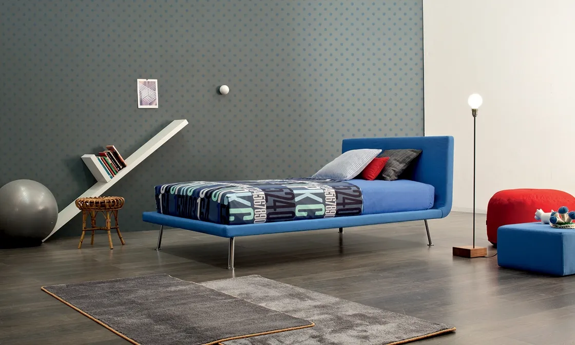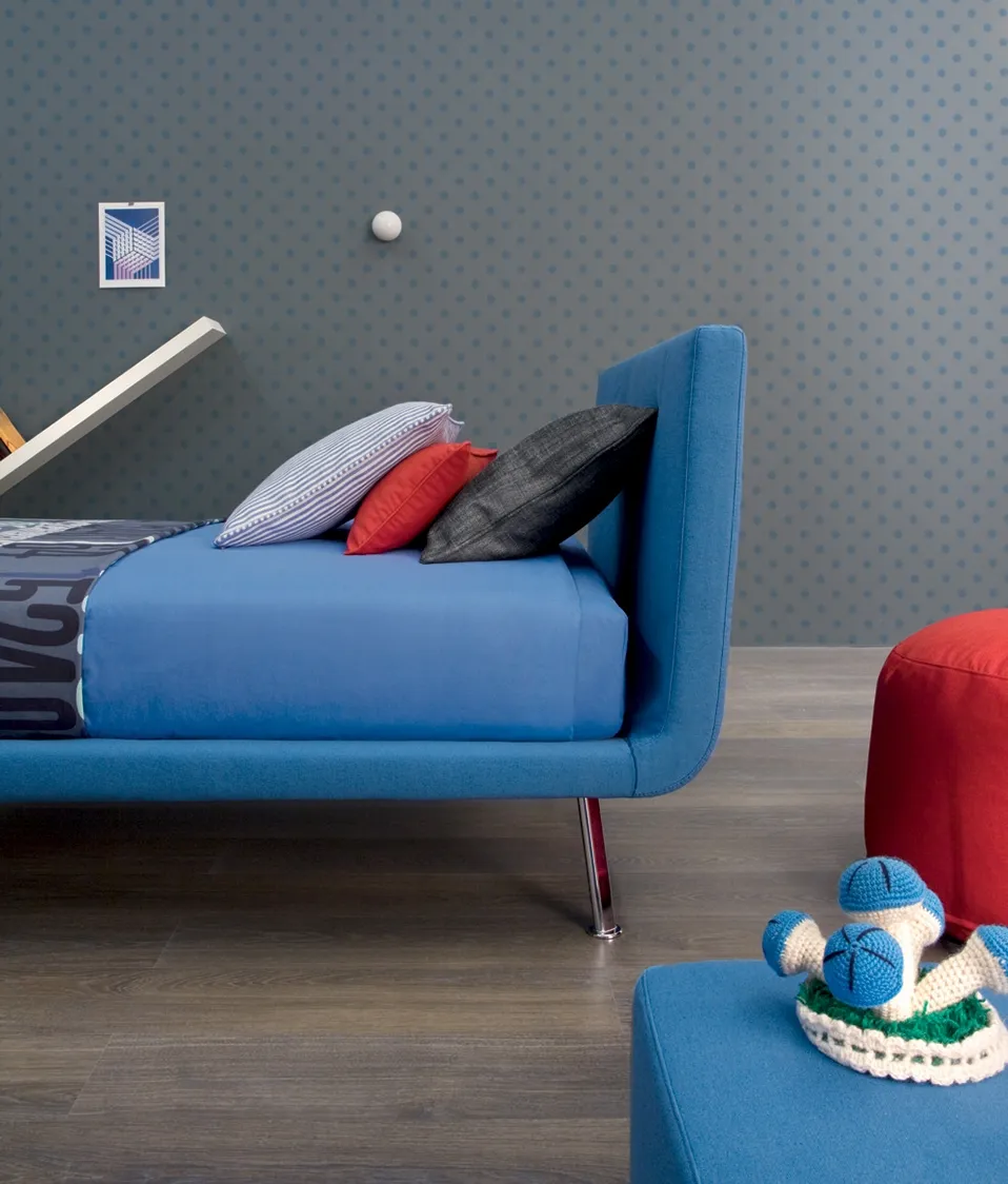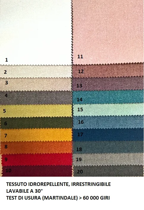 Letto dalla linea moderna. H piede 24 cm per facile pulizia pavimento Rete strutturale in doghe di faggio inclusa disponibile allo stesso prezzo 90 x 190 o 90 x 200 Misure letto: 109x228 (con rete 90x200) 109x218 (con rete 90x190) Il letto é completamente sfoderabile Si può scegliere in tutti i colori del tessuto idrorepellente irrestringibile e lavabile ad acqua. Con supplemento di € 30,00 anche in ecopelle, o in microfibra