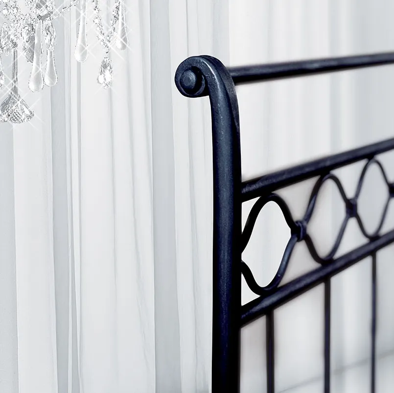 Letto in Ferro Battuto – Ferro Pieno – Forgiato a mano - Il letto é disponibile con rete matrimoniale l. 160 e con lunghezza a misura senza supplemento di prezzo. Disponibile in tutti i colori come da campionario allegato. Disponibile anche nella versione per rete singola o 1 piazza e 1/2