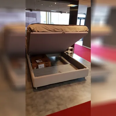 letto matrimoniale mod.oxford rivestito in tessuto colore ecrù completo di box-contenitore in promo-sconto del 40% Gierre Mobili