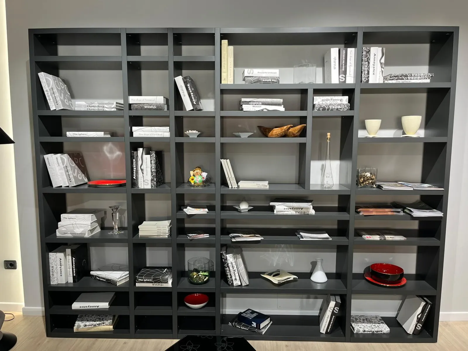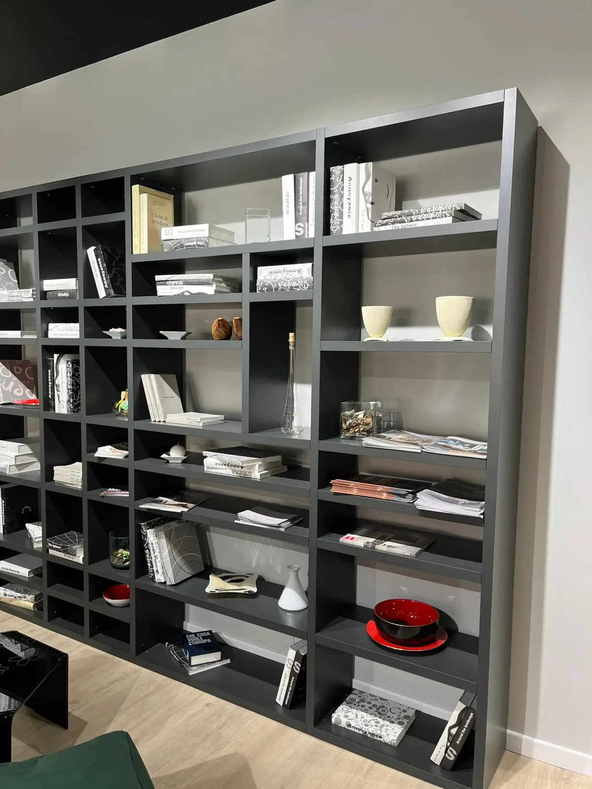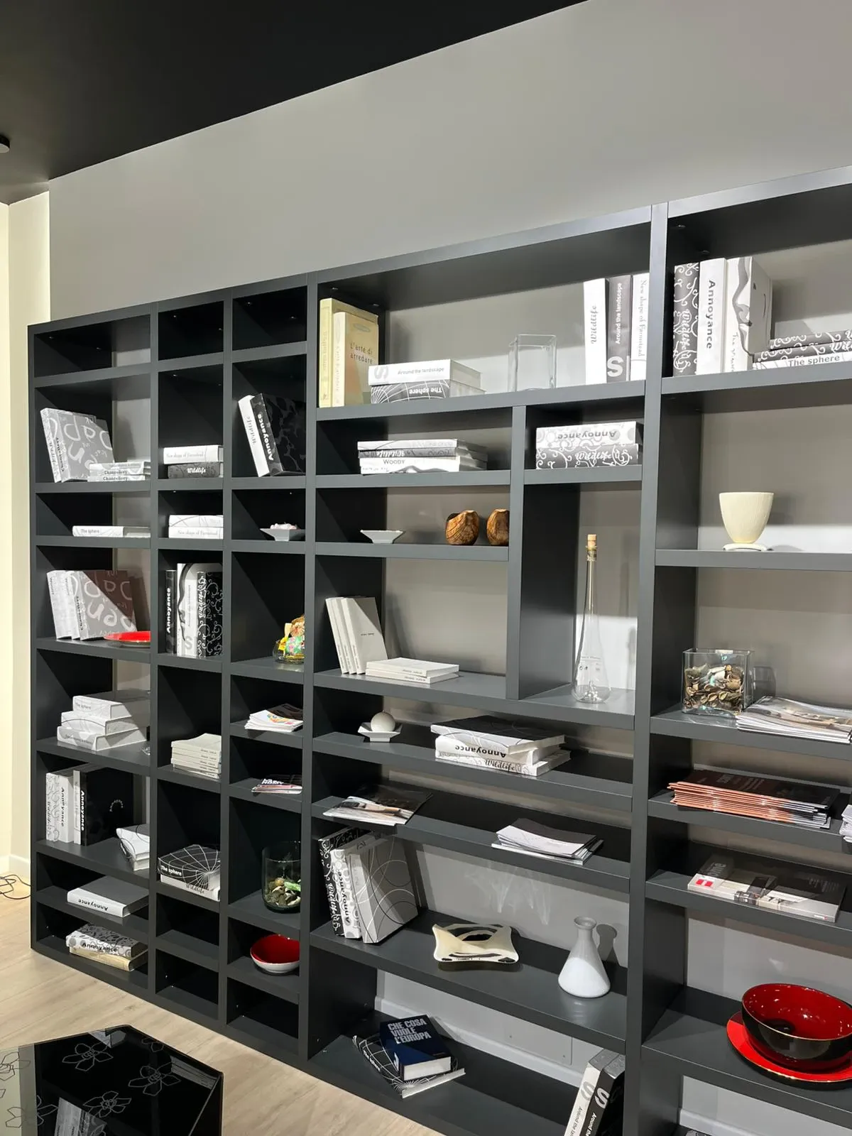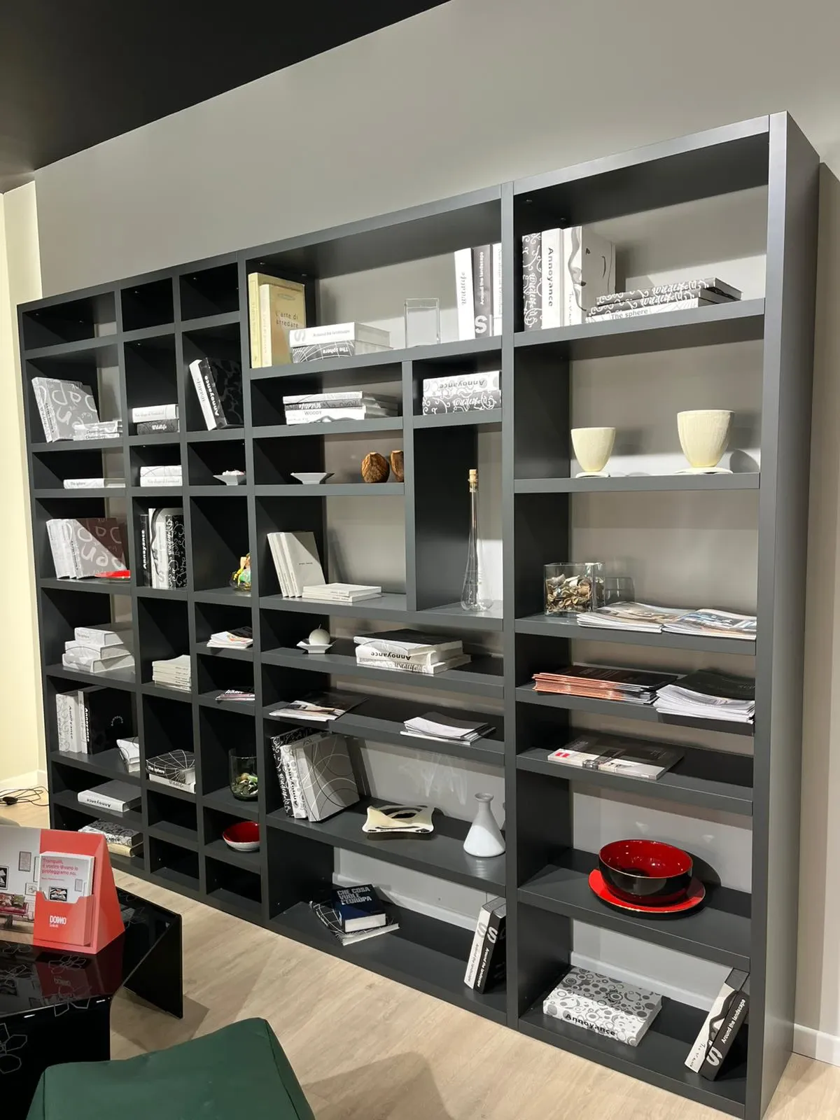 - Per arricchire un living moderne prediligi una libreria dello stesso stile, come questo modello a prezzo scontato.