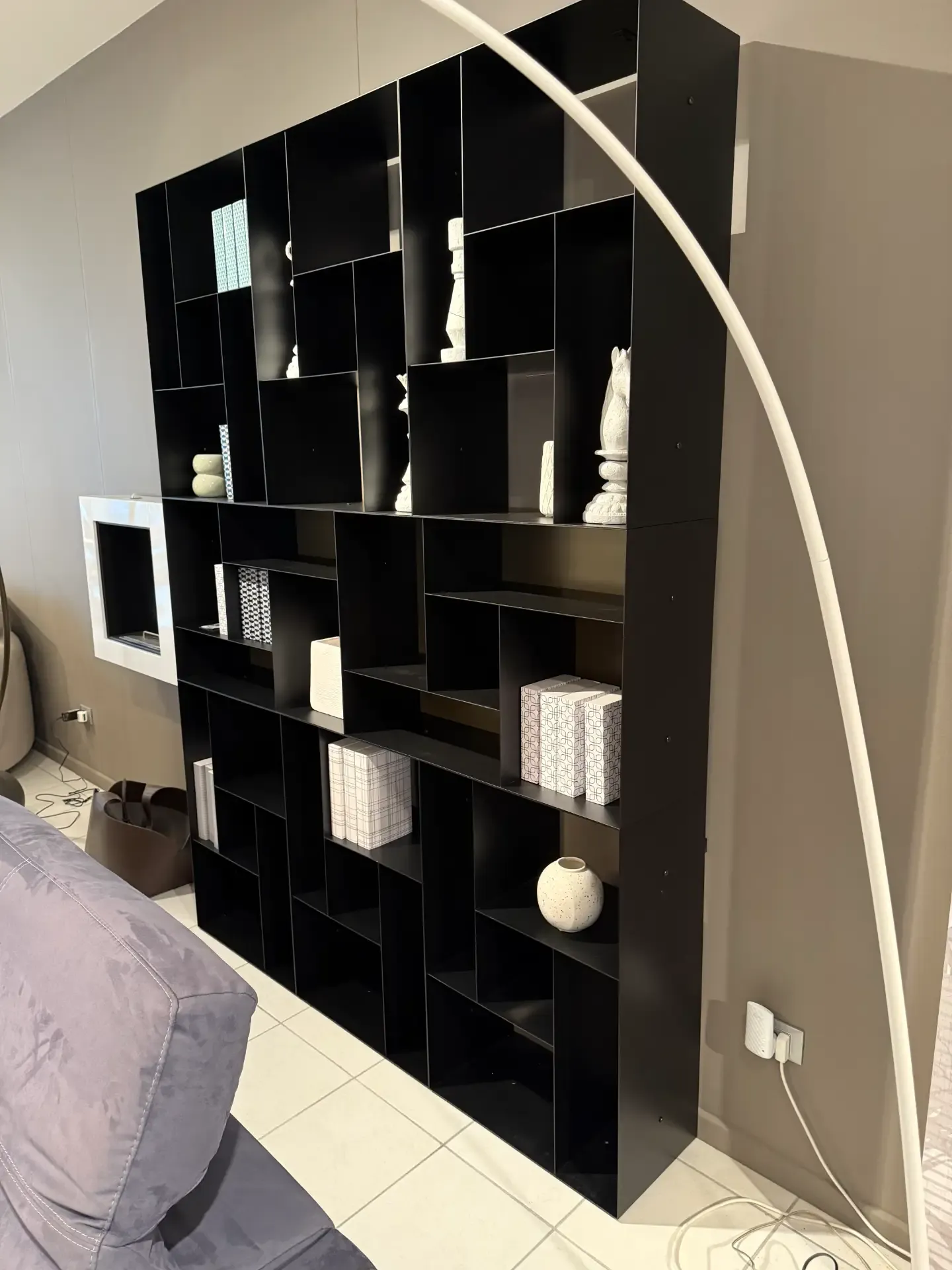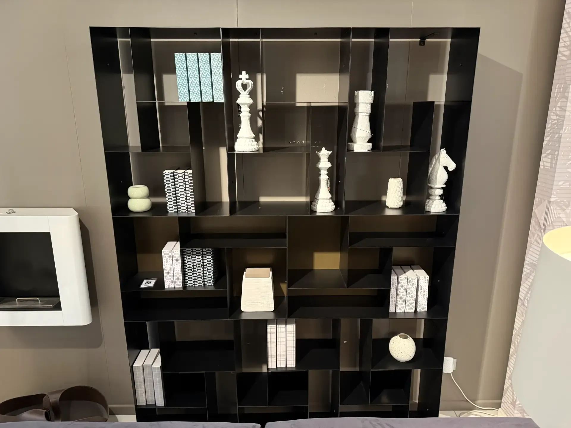 Per valorizzare un living moderno scegli una libreria dello stesso stile, come questo modello a prezzo scontato.