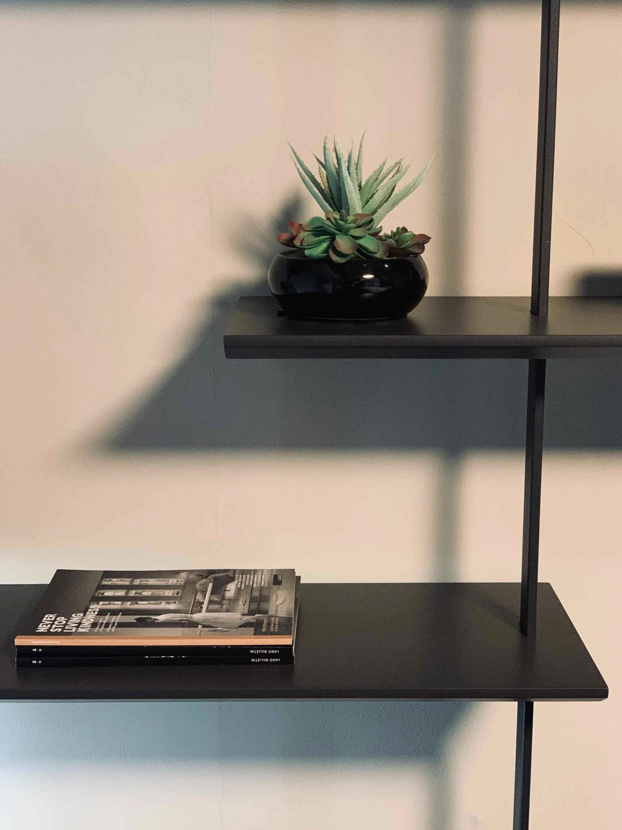 La Libreria Airport è un sistema di arredo flessibile e personalizzabile a propria misura. Con fissaggio a muro o a soffitto, è posizionabile sia a parete, anche in versione angolare, sia in centrostanza. Risulta perfetta, infatti, come elemento divisorio di un grande ambiente grazie ai ripiani in legno.