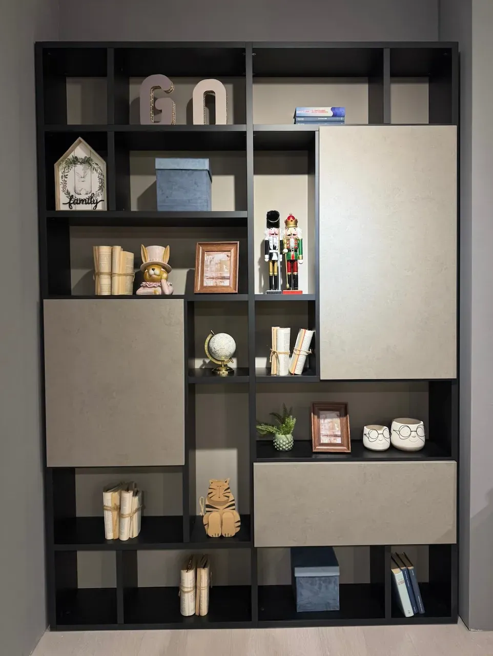 FINITURA: MELAMINICO CARBONE, ANTE OPUS CALCE, SCHIENALI ARENA
