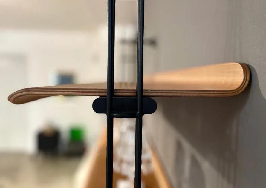 Libreria Kartell mod. Adam Wood disegnata da Philippe Starck, montanti terra/parete in acciaio verniciato nero e ripiani in legno curvato. Prodotto nuovo da esposizione. Dim: l.193 p.32 h.215