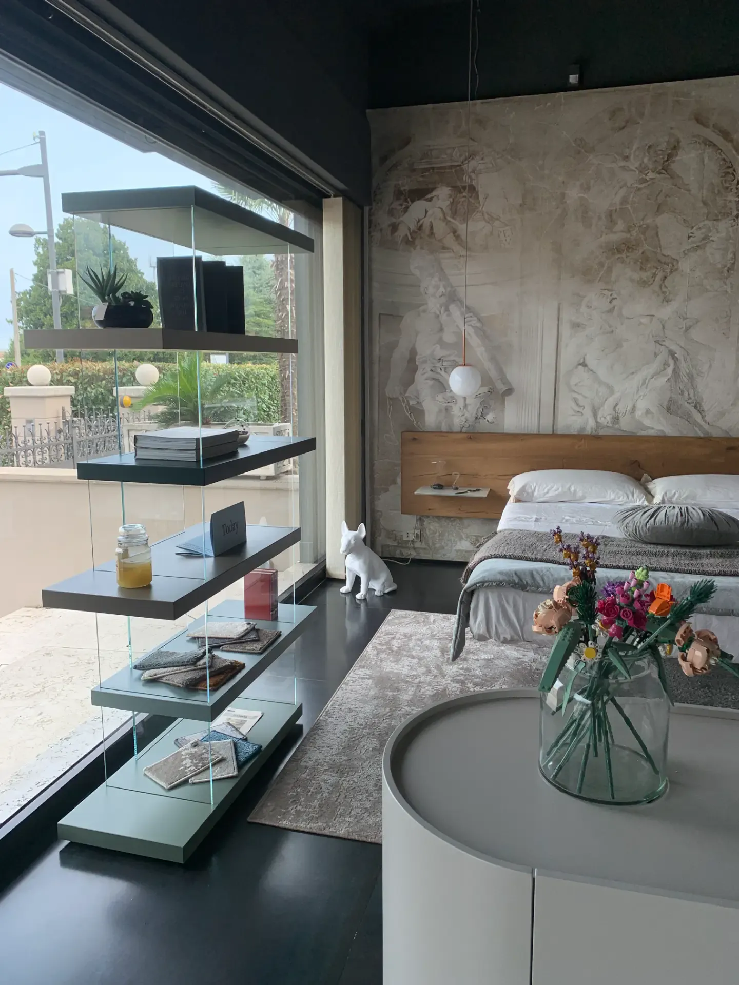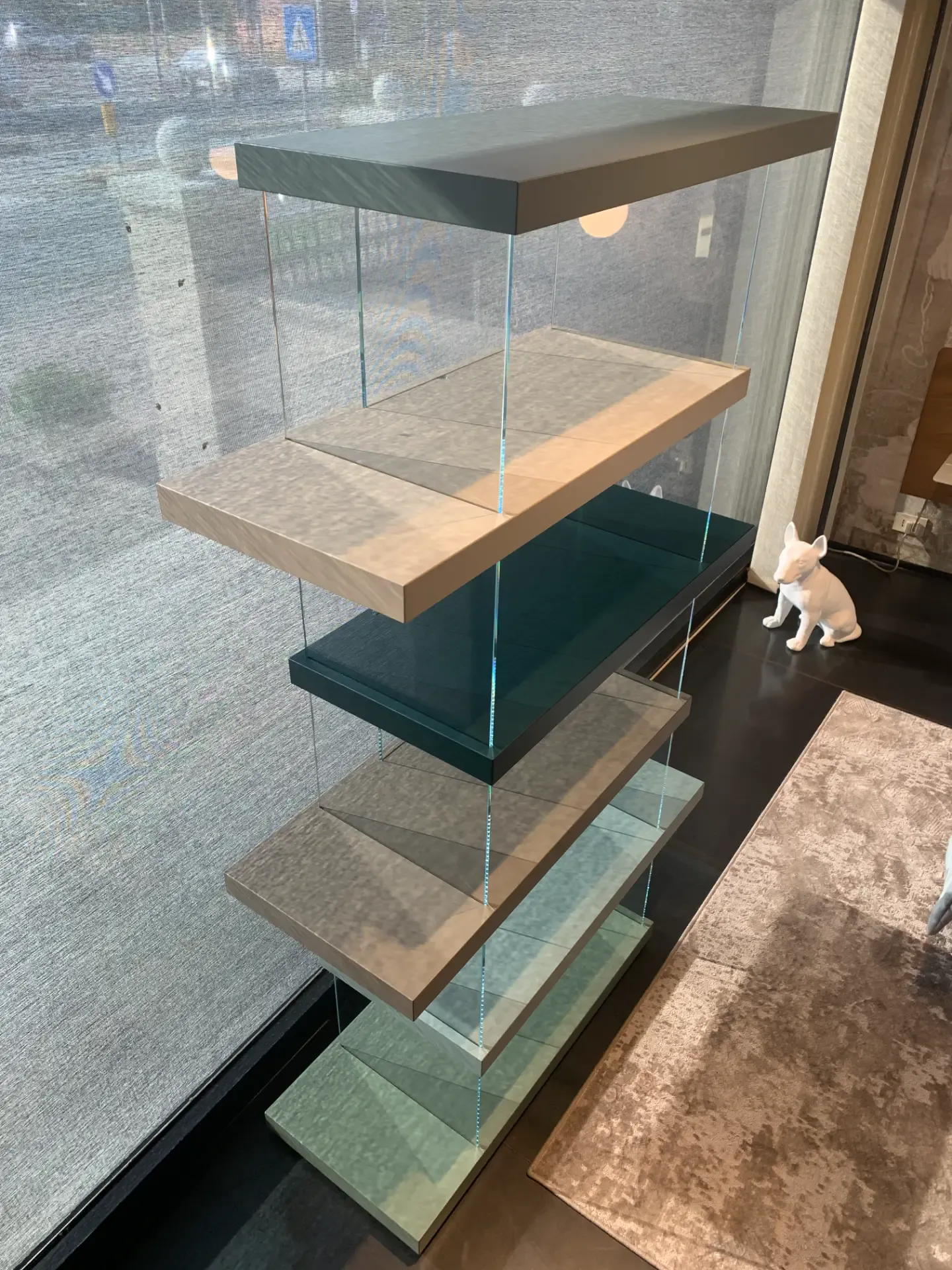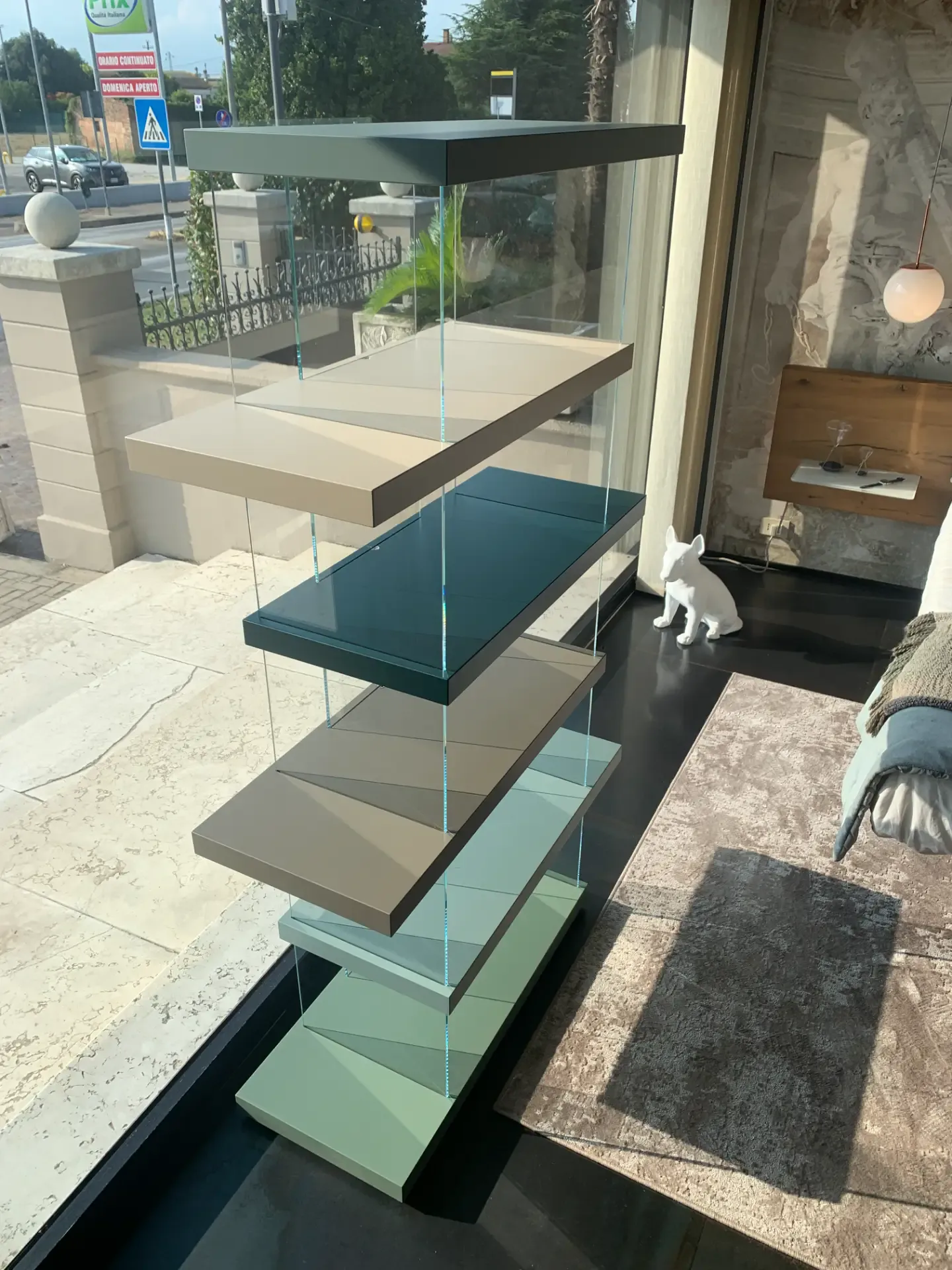 La struttura modulare con mensole sfalsate crea un effetto dinamico e contemporaneo, ideale per arredare con stile soggiorni e ambienti di design.
