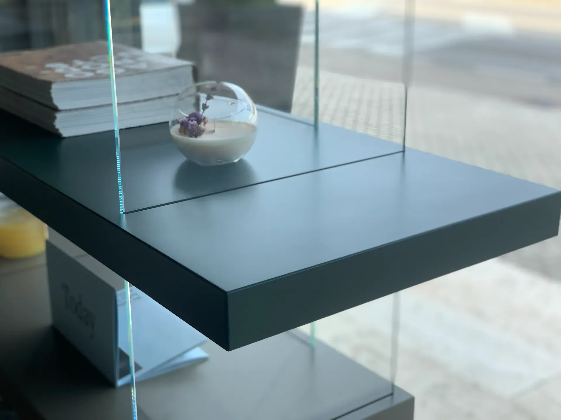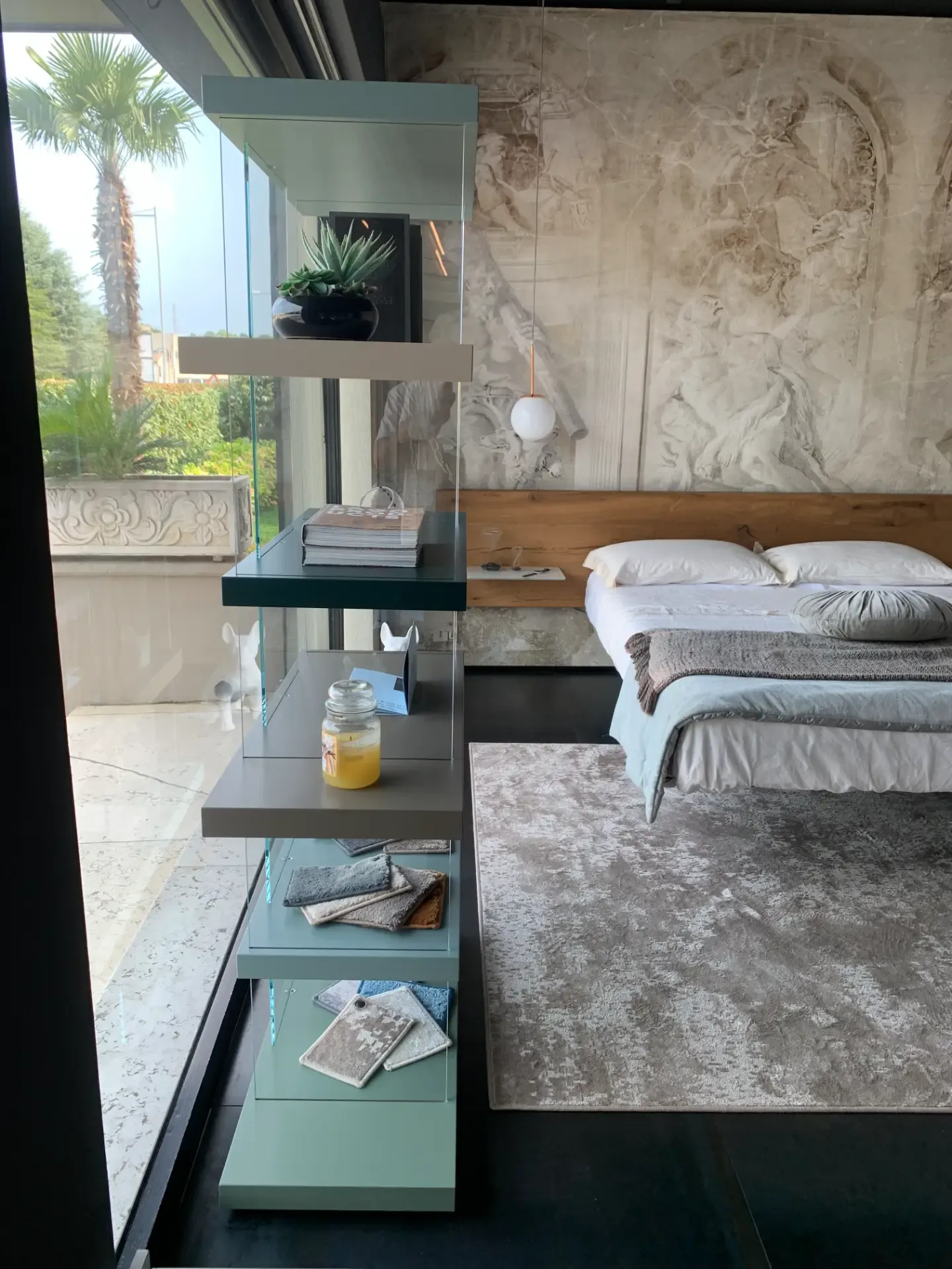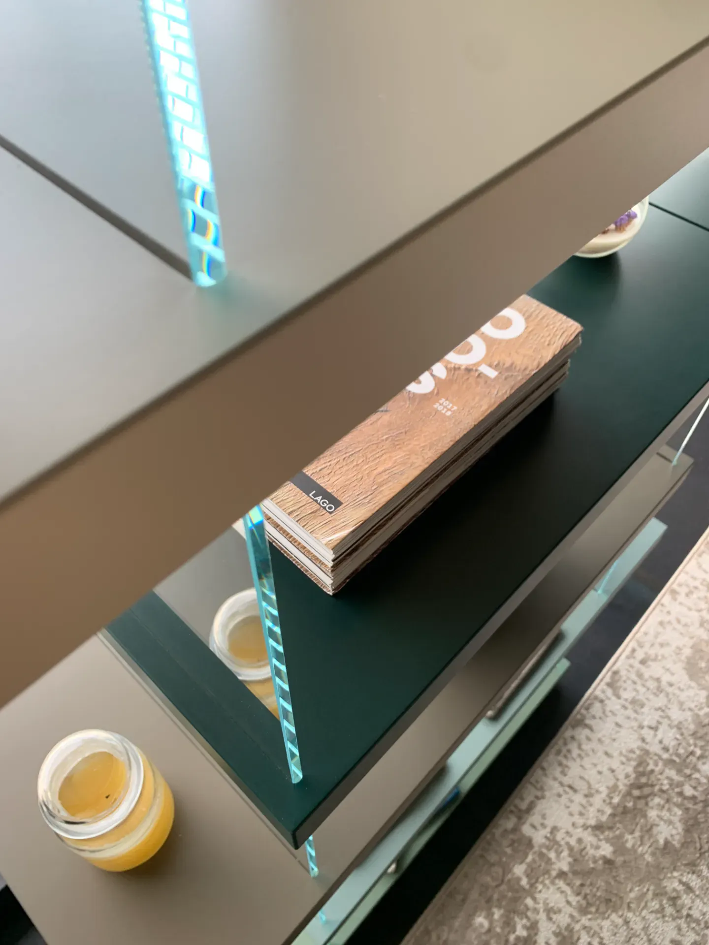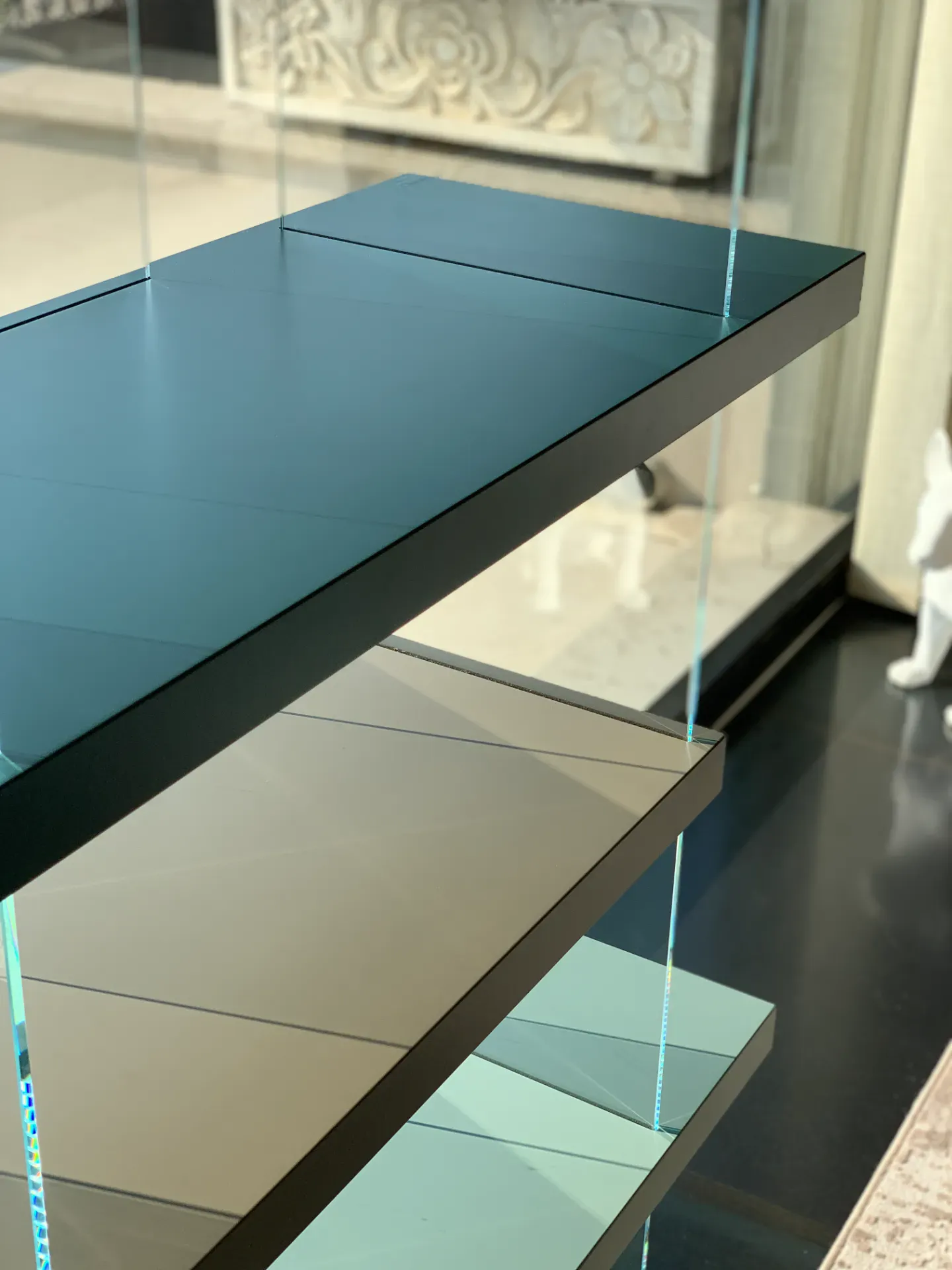 Design moderno e leggero, libreria caratterizzata da un elegante gioco di volumi sospesi. Realizzata in laccato opaco nelle raffinate finiture Oliva, Argilla, Havana, Foresta e Spago, è completata da alzate in vetro temperato trasparente che donano luminosità e leggerezza alla composizione.