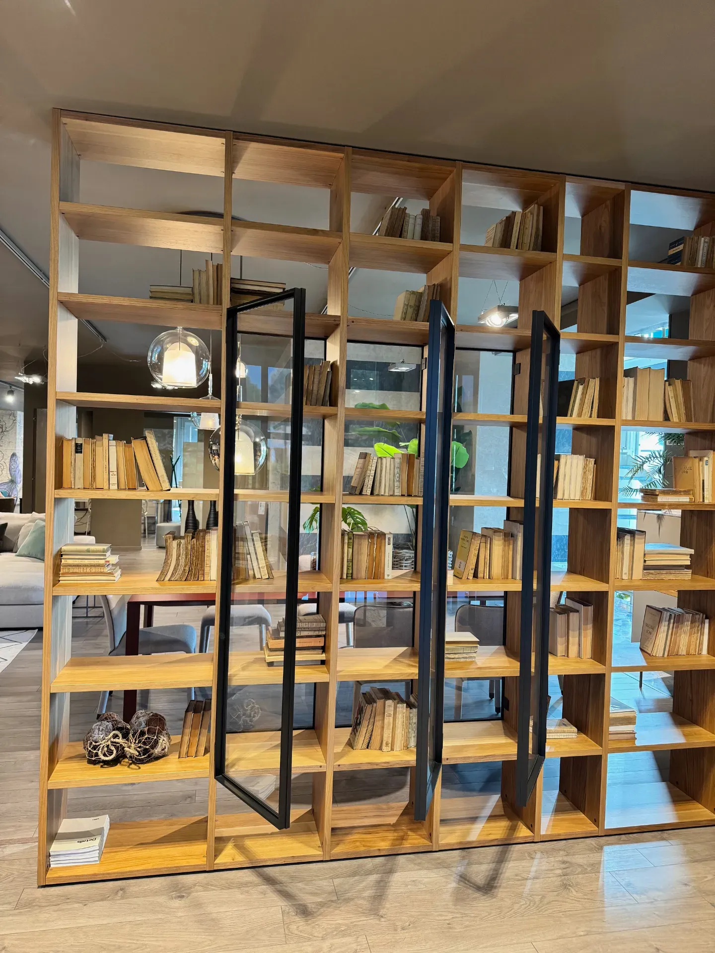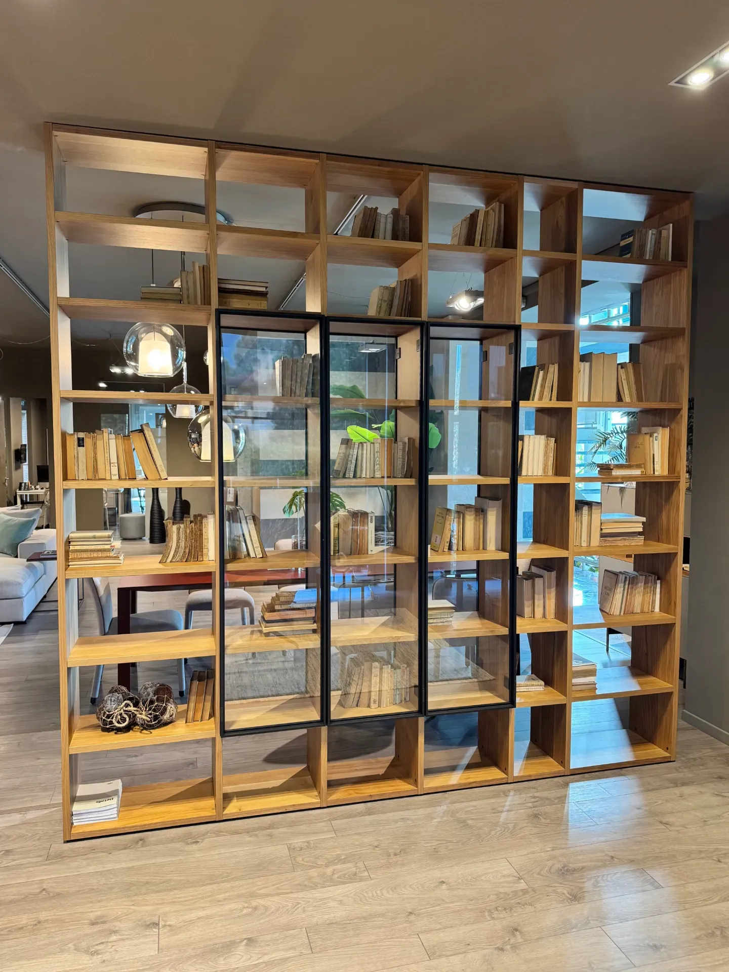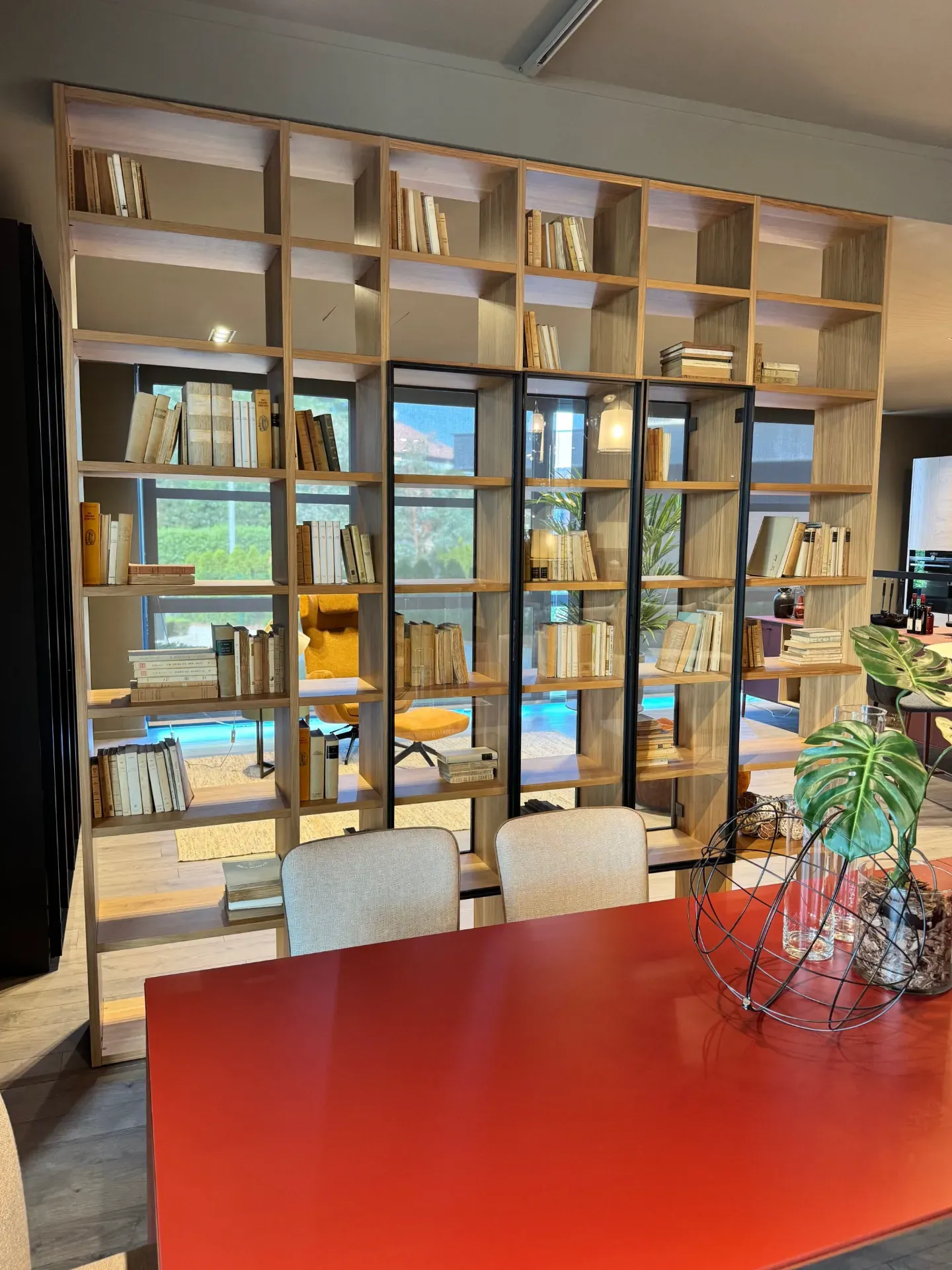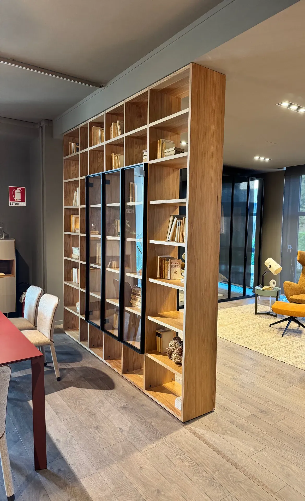 Libreria bifacciale Selecta di Lema scontata a 6.807,00 euro. Libreria a giorno con tre ante per lato in vetro. Libreria realizzata tutta in essenza finitura noce. Le ante in vetro modello Dandy hanno un telaio nero, che consente l'apertura, e misurano in larghezza 44,6 e altezza 175,8 cm. Lema utilizza come spessori dei fianchi e dei ripiani 28 millimetri. Libreria moderna, funzionale ed estetica, che dona valore al locale in cui viene collocata. In questa libreria sono stati utilizzati diversi vani con larghezze differenti, per dare movimento alla composizione. Misure libreria: larghezza 286,5, profondità 34,6, altezza 278 centimetri. Libreria moderna che potrete vedere all'interno della nostra esposizione a Giussano, in provincia di Monza e Brianza. Per maggiori informazioni non esitate a contattarci.