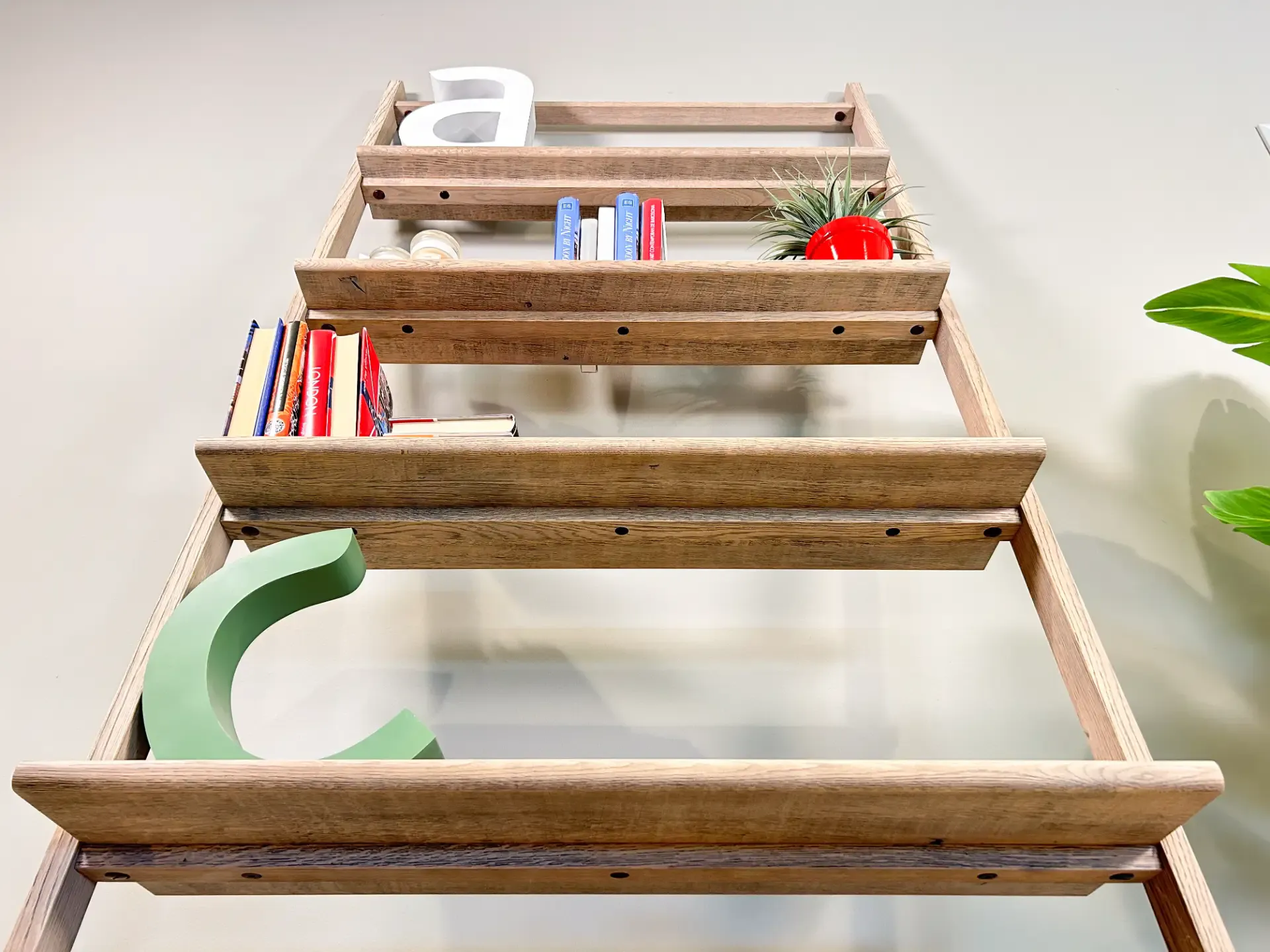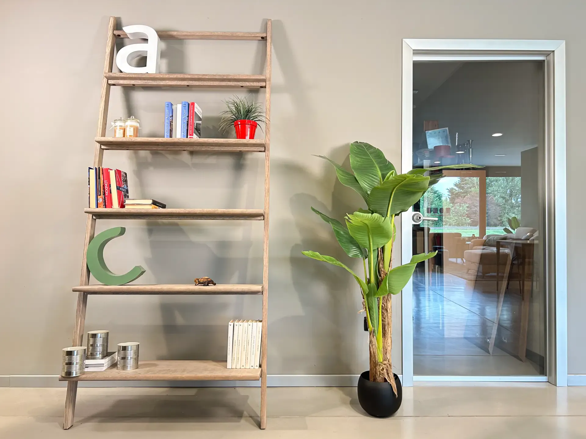 Questa libreria a scala elegante e funzionale è perfetta per arricchire il tuo spazio con stile. Realizzata in legno chiaro, offre una combinazione di praticità e design, ideale per esporre libri, piante e oggetti decorativi. Un'aggiunta moderna e versatile per ogni ambiente.