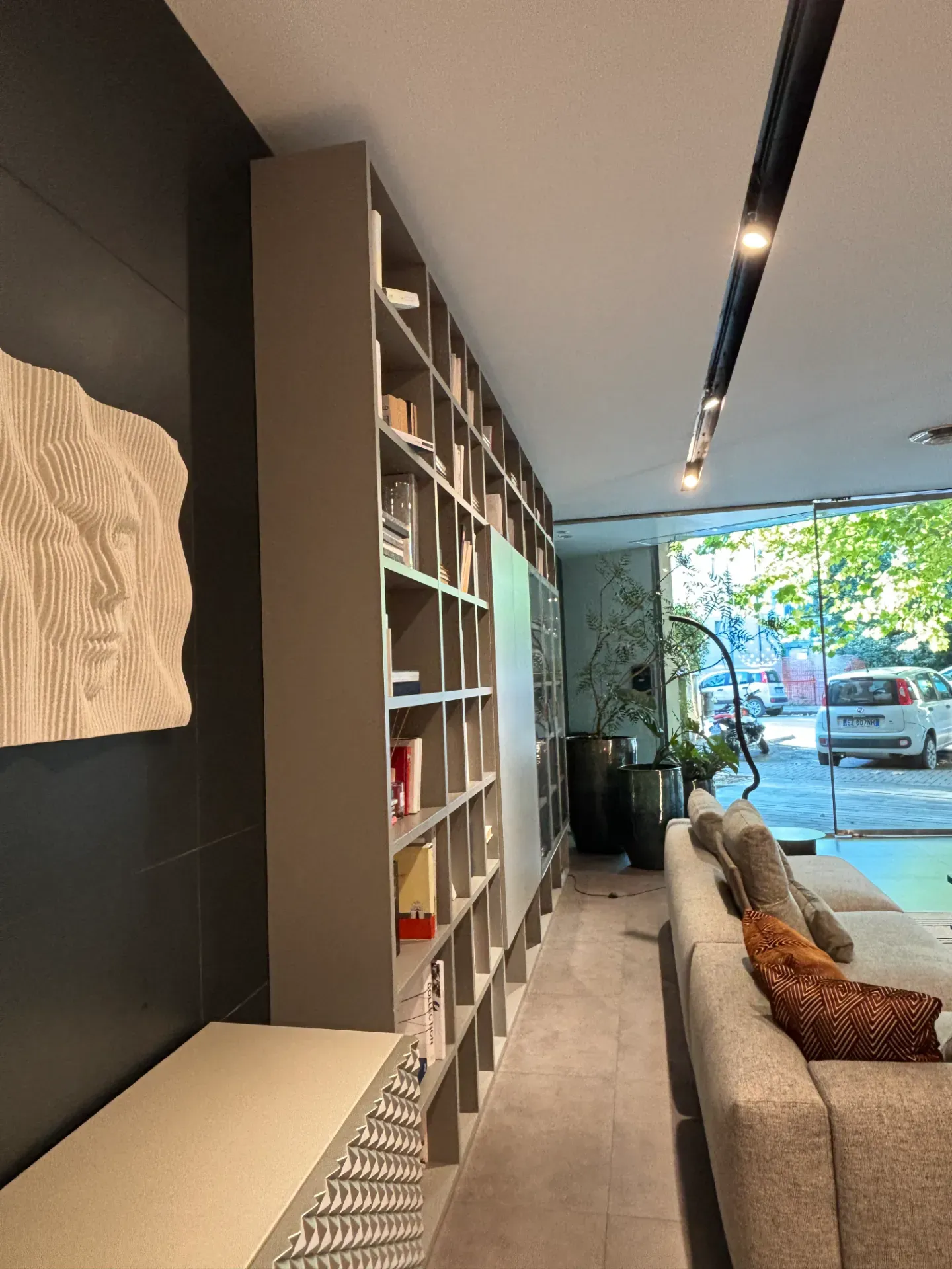 I mobili e complementi per la zona giorno permettono di impreziosire lo spazio dando vita a particolari atmosfere: se desideri un soggiorno moderne, la libreria nella fotografia fa al caso tuo