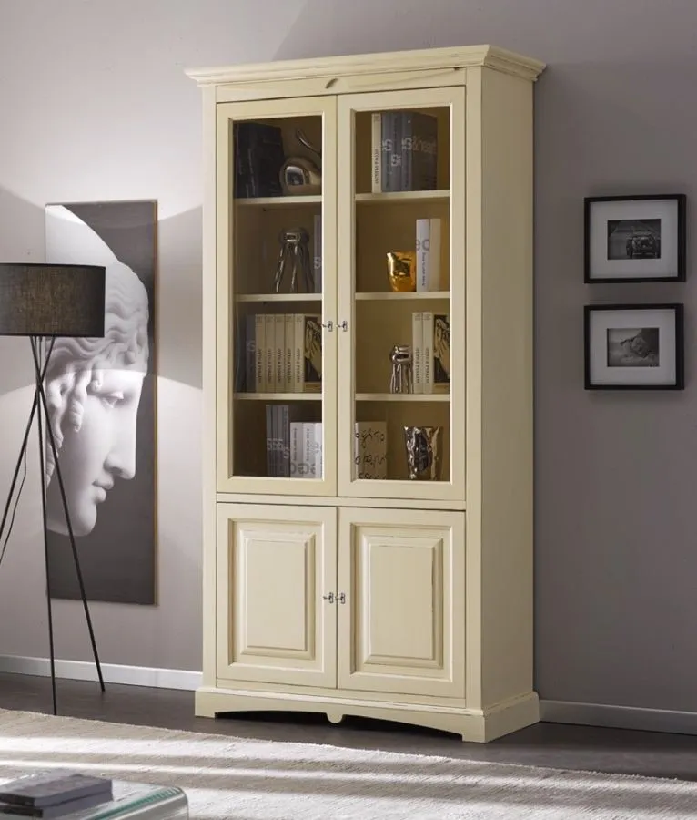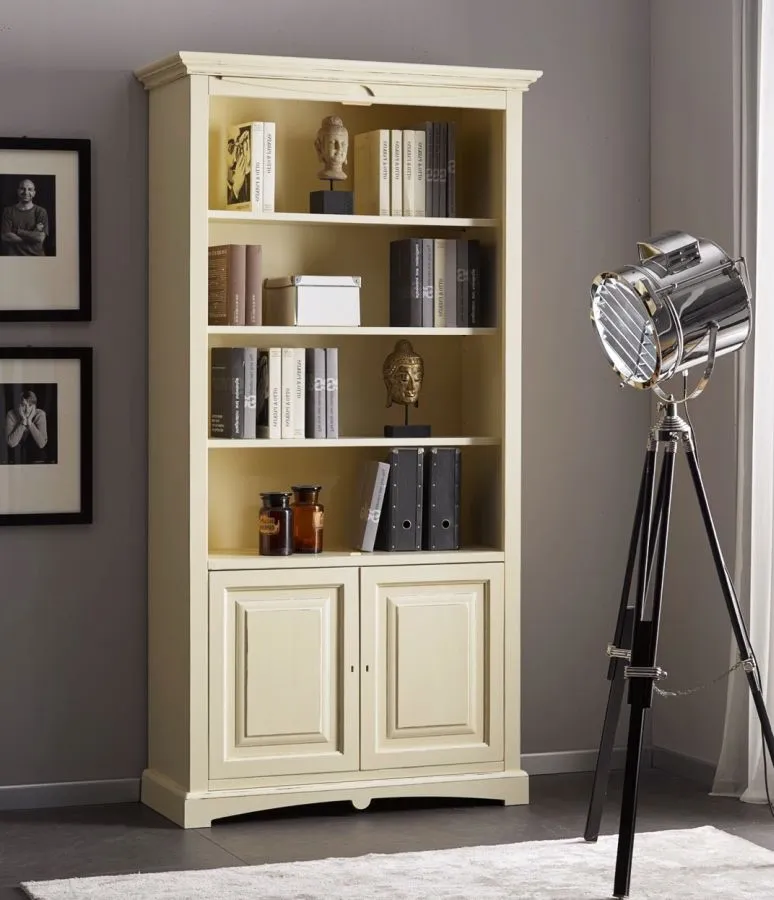 LIBRERIA MOD VERONA 2 PORTE CHIUSE CON ANTA DIAMANTATA, STILE CLASSICO CONTEMPORANEO CON LACCATURA AVORIO O A SCELTA BIANCA.