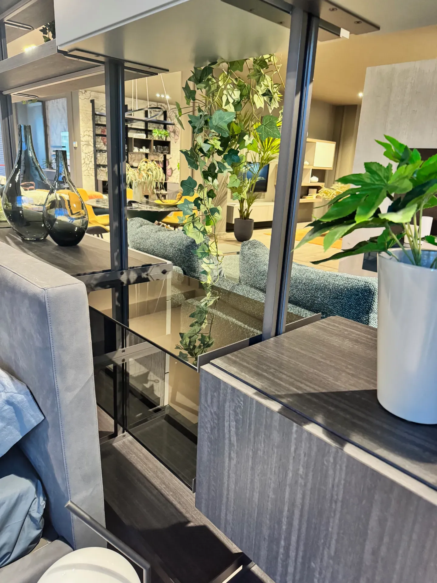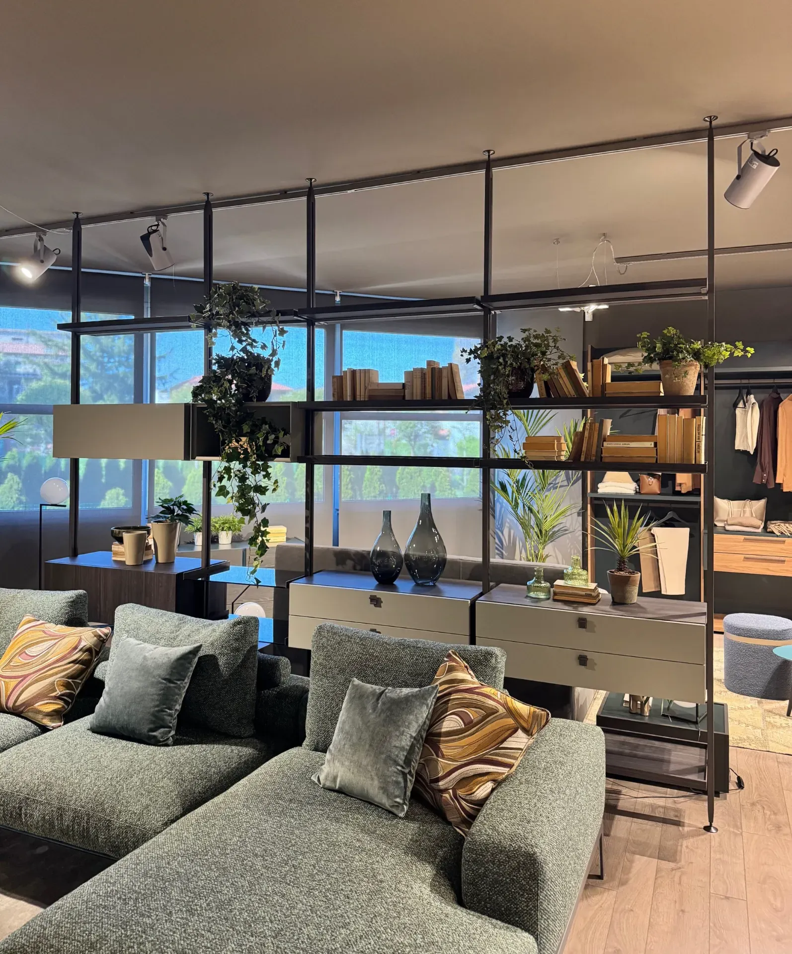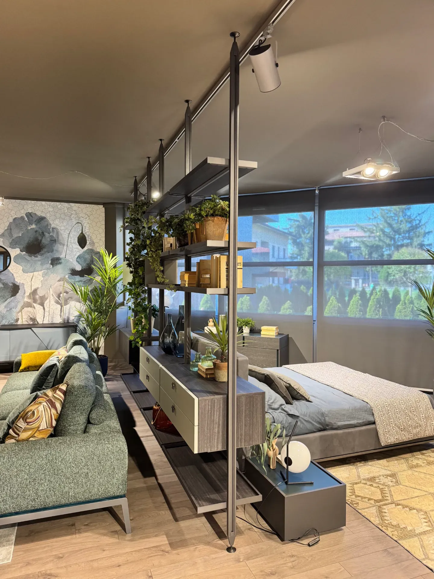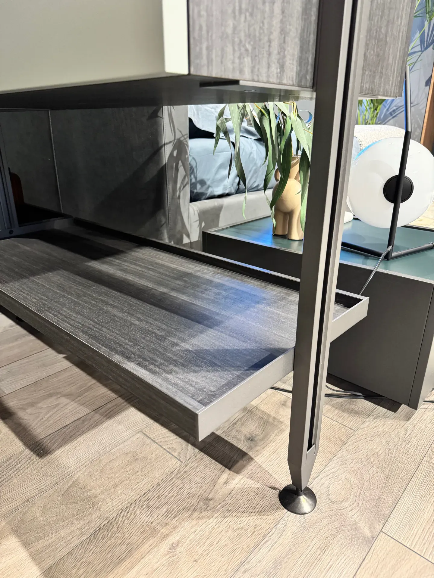 Libreria bifacciale con montanti terra soffitto, modello Antis di Alf Da Frè in offerta a 4.864,00 euro. Libreria di design con montanti in alluminio moka shine, privi di fori, dove si agganciano contenitori, mensole folding in legno e mensole in vetro. La libreria è composta da tre contenitori con struttura in melaminico eukalipto fossile, una con anta ribalta e apertura push-pull e due con due cassetti con frontali laccati tè verde con maniglia pomolo in cuoio. Il resto della libreria è composta da mensole in legno folding (a vassoio) in melaminico eukalipto fossile e due mensole in vetro grigio fumè. Dimensioni libreria: larghezza 370,1, profondità 46,5 ,altezza 305 centimetri (possibilità di ridurla in altezza). Elemento d'arredo che potrete vedere all'interno della nostra esposizione a Giussano, in provincia di Monza e Brianza, a pochi chilometri di distanza da Milano. Per maggiori informazioni non esitate a contattarci.