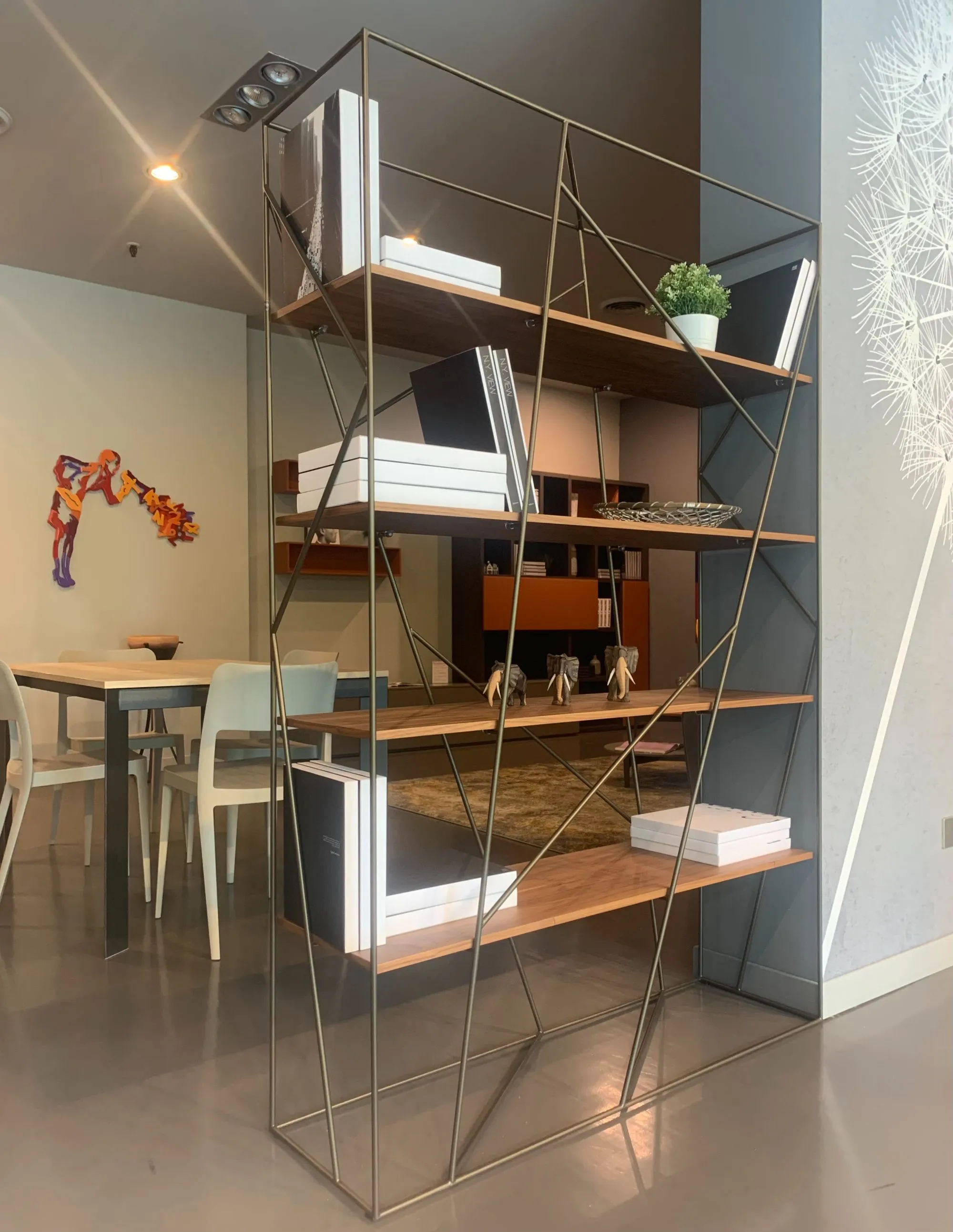 SUPER OFFERTA LIBRERIA 2021 !! Bellissima libreria di Tonin Casa, modello Naviglio, in legno, in super offerta scontata per rinnovo esposizione a € 1.250,00 IVA inclusa (trasporto e montaggio esclusi). Dimensione libreria: L 120 cm P 35 cm H 180 cm. Struttura in metallo verniciato colore bronzo pietra opaco con n.4 ripiani in legno impiallacciato Noce canaletto. La libreria è in perfette condizioni, come nuova. Per ulteriori informazioni e un preventivo personalizzato non esitate a contattarci;