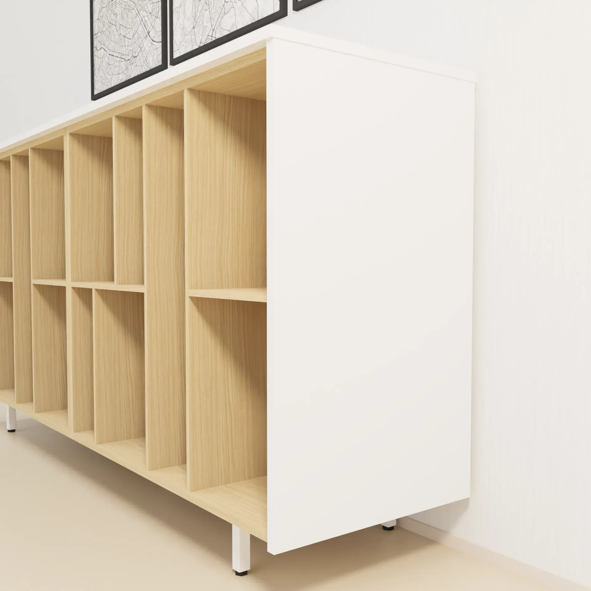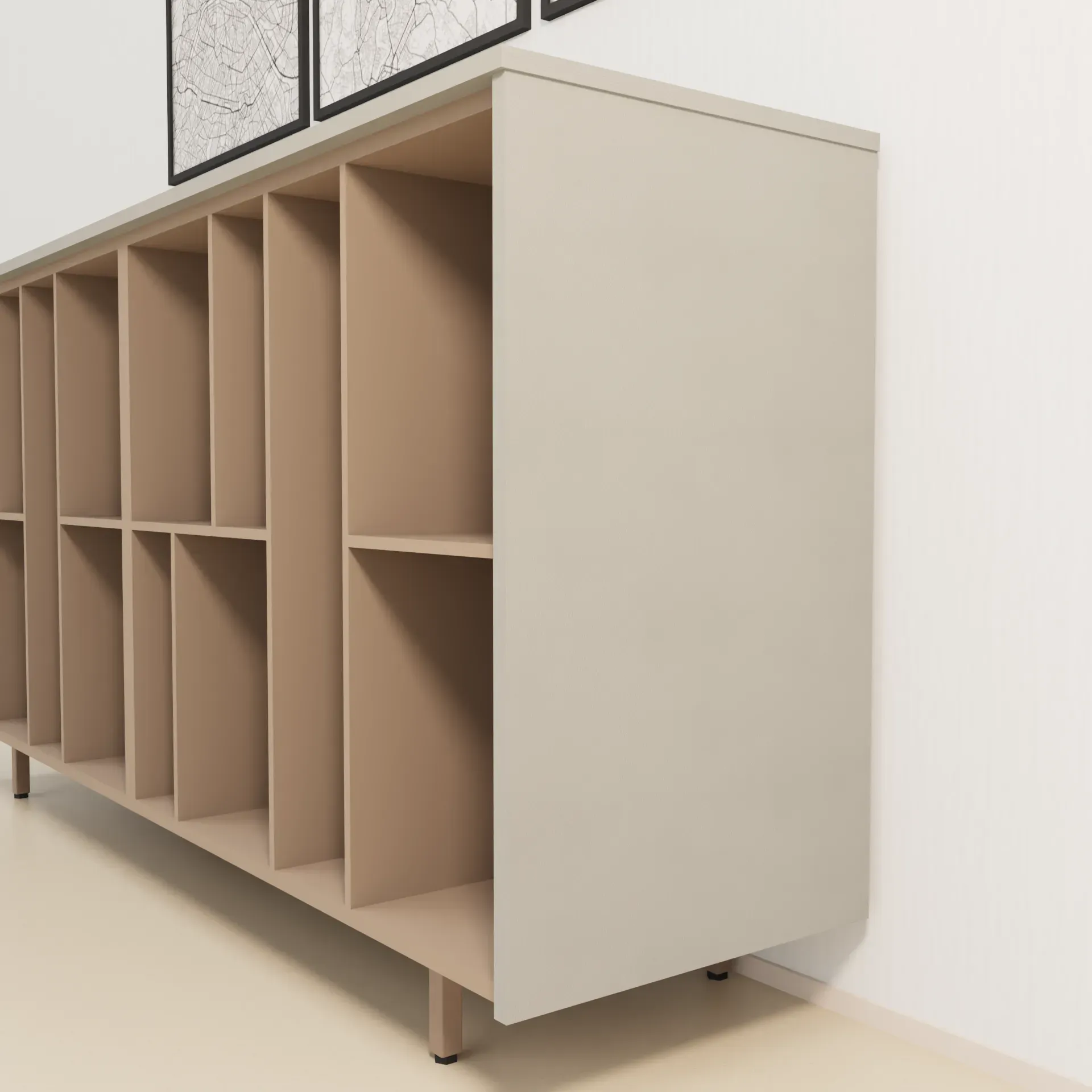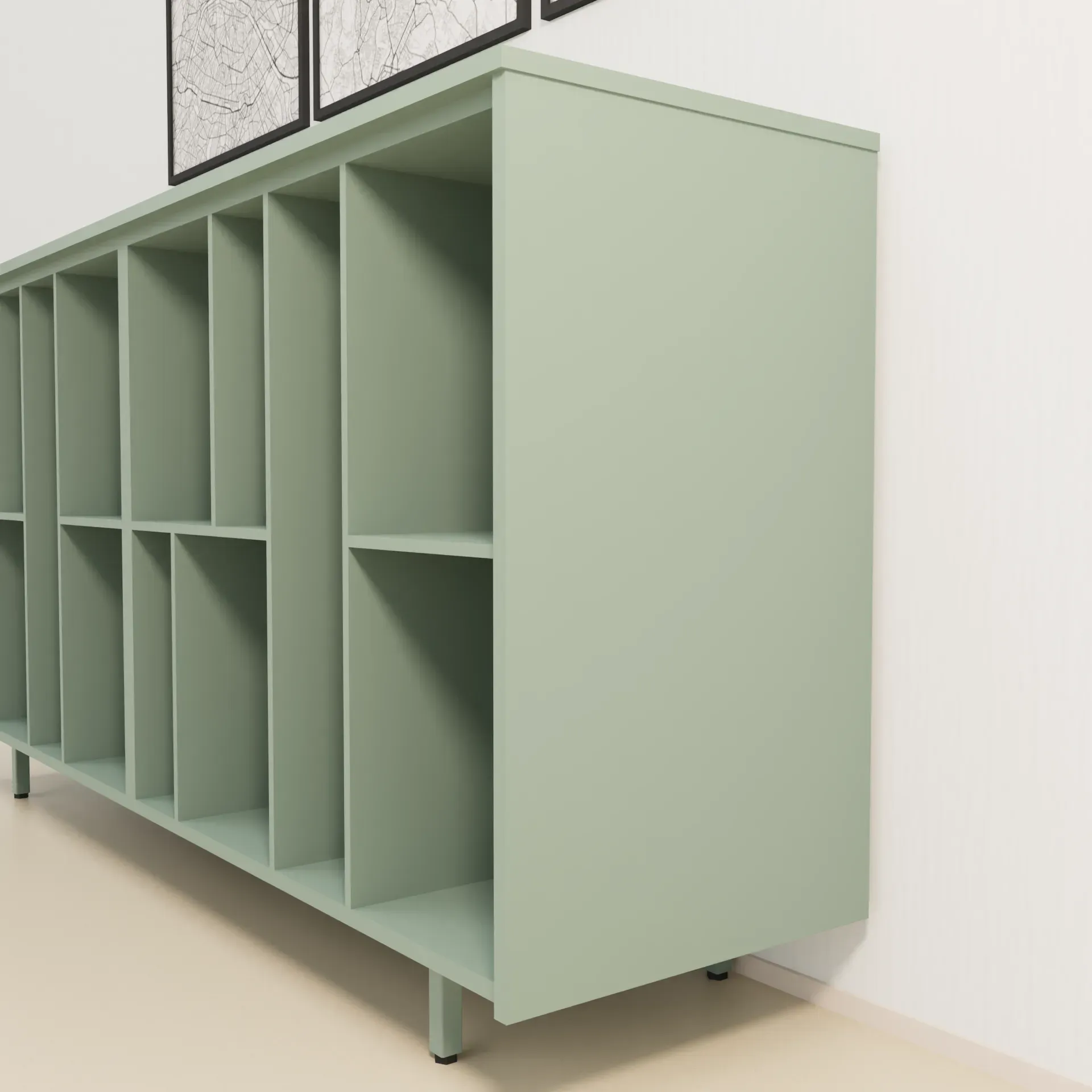 La libreria Sigma a giorno nell'immagine è appartenente alla nostra collezione di mobili ed elementi accessori senza maniglia.
