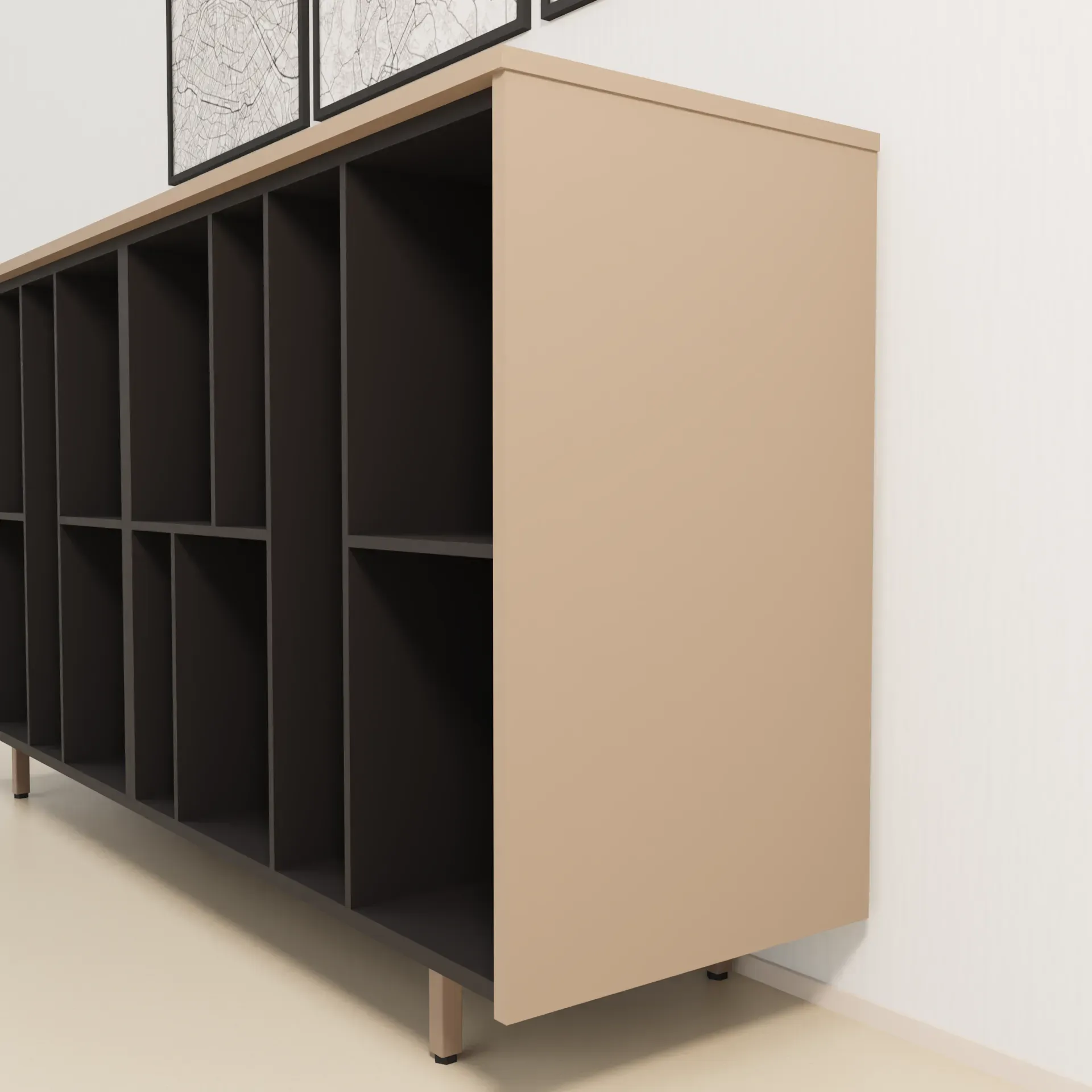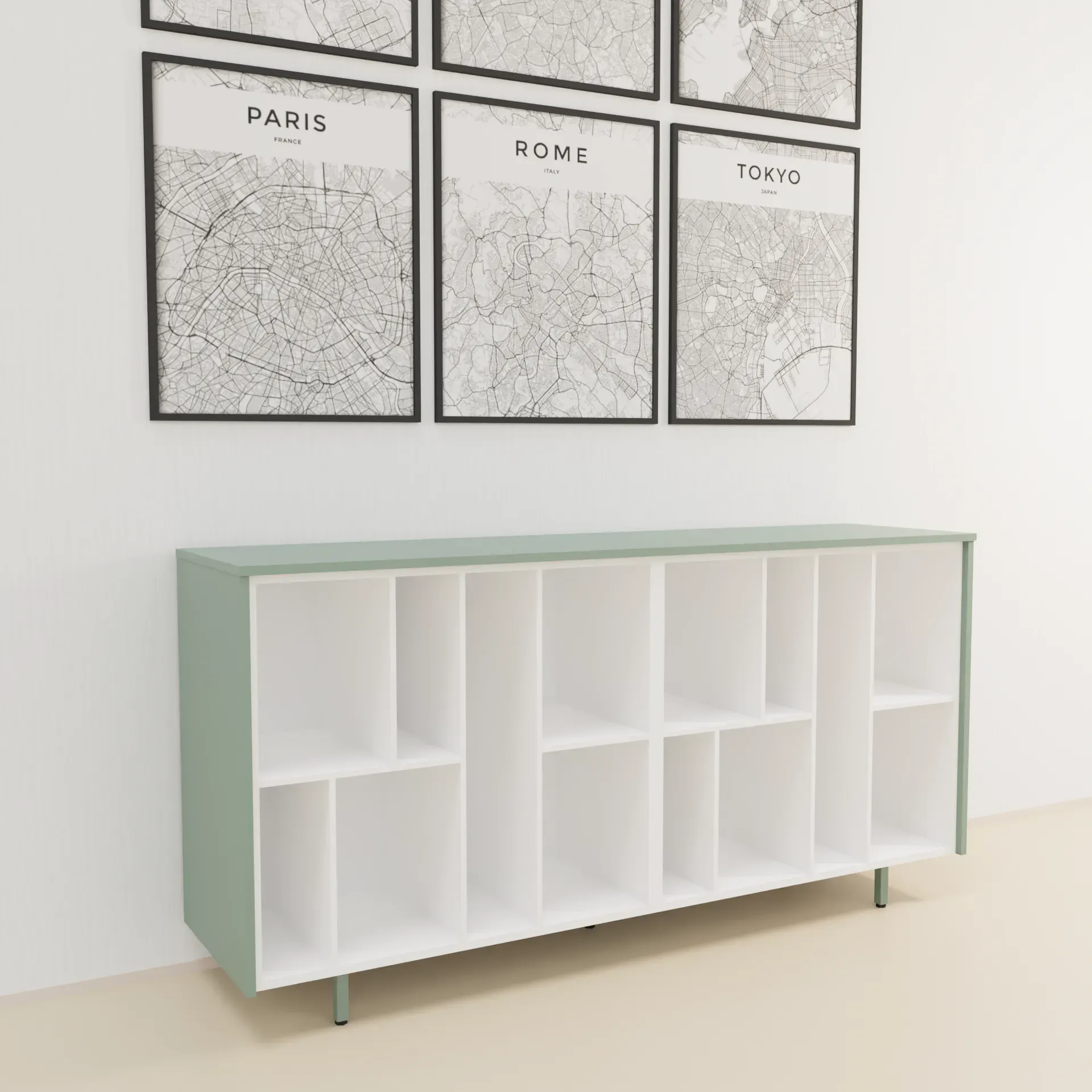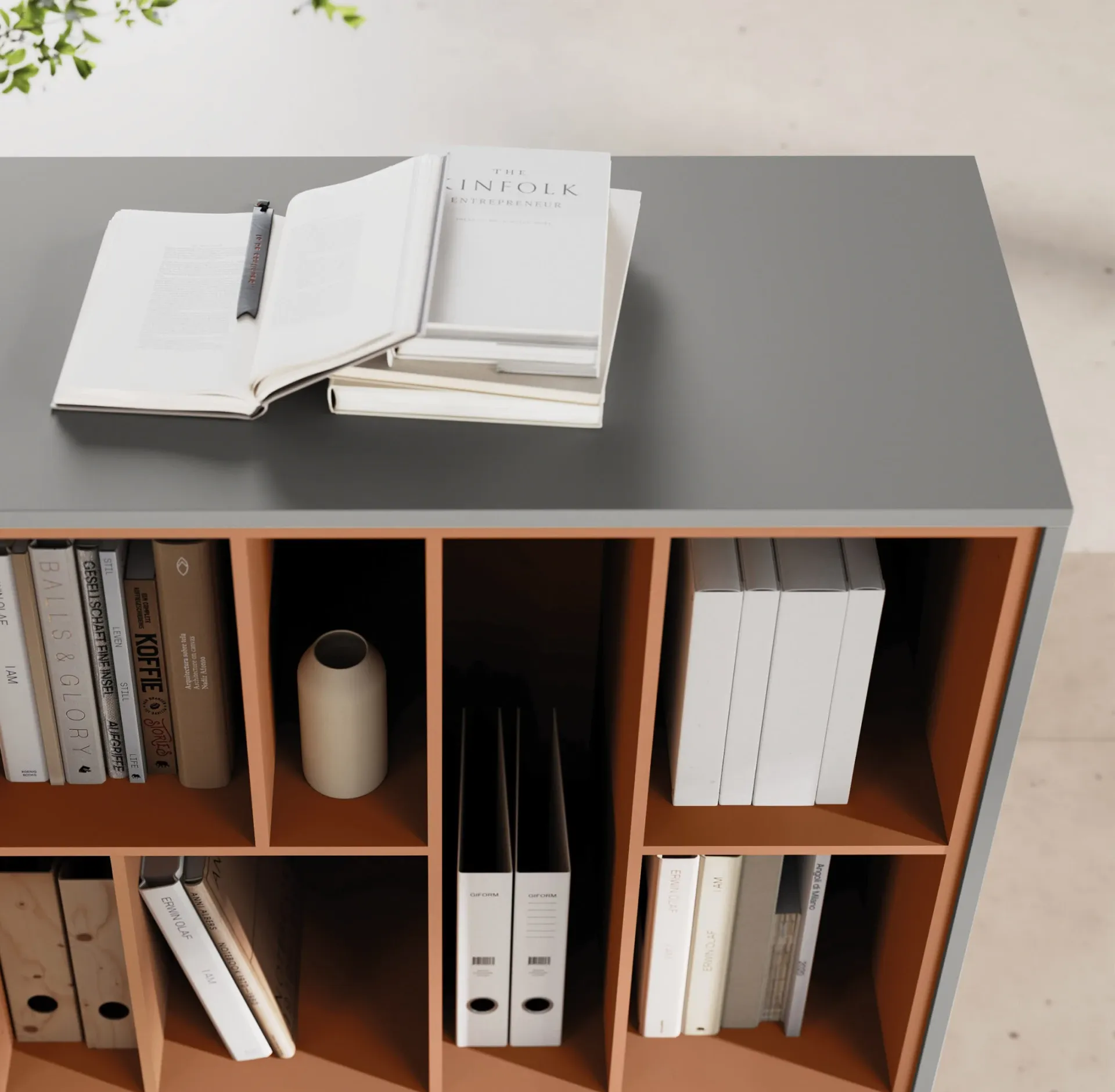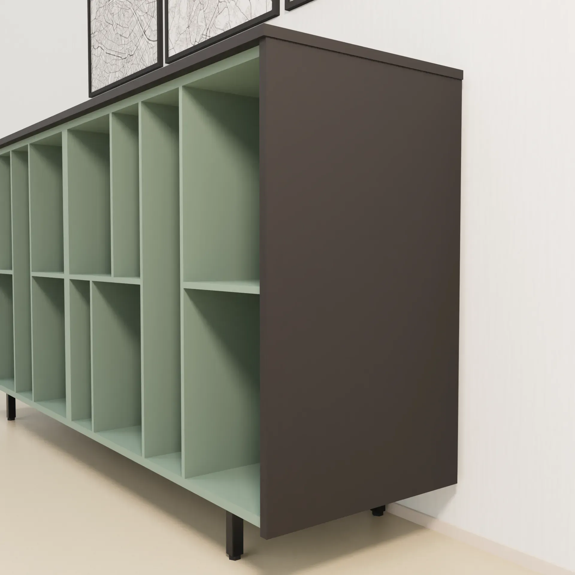 La libreria Sigma a giorno nell'immagine è appartenente alla nostra collezione di mobili ed elementi accessori senza maniglia.