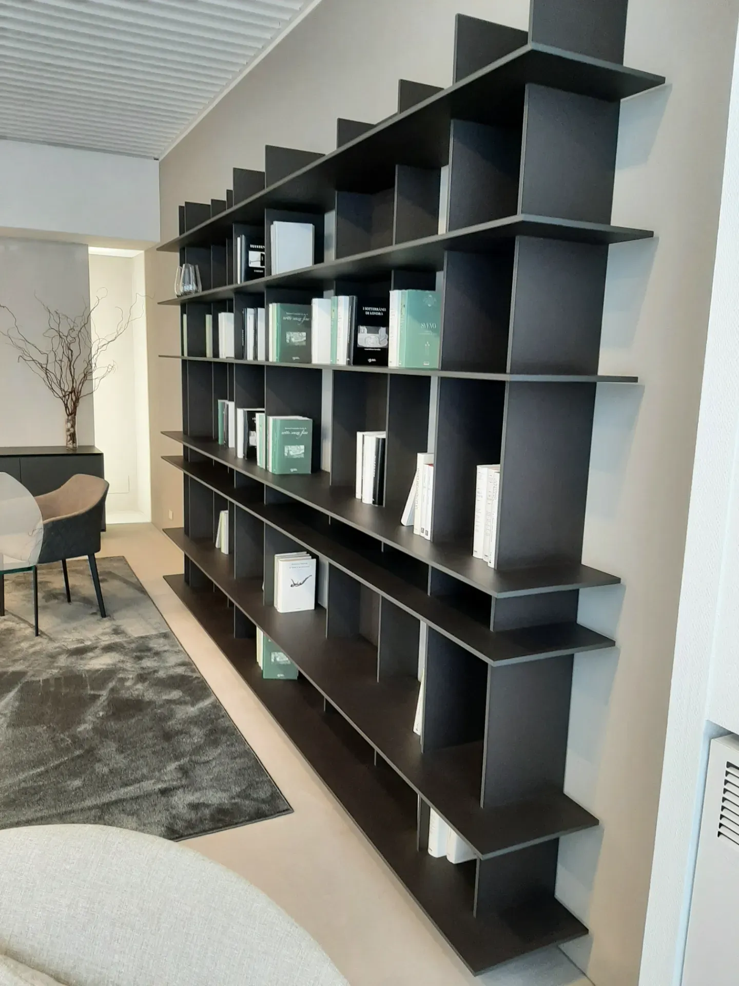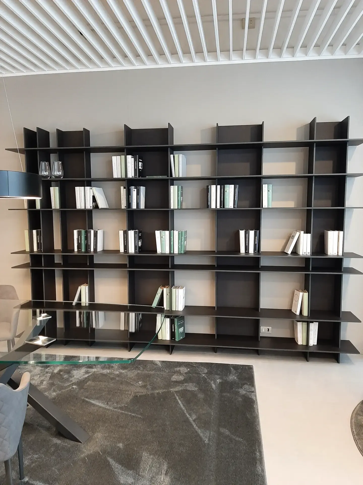 Libreria Blade di Modulnova realizzata con elementi a U con tecnica folding e con ripiani orizzontali lavorati ad incastro.