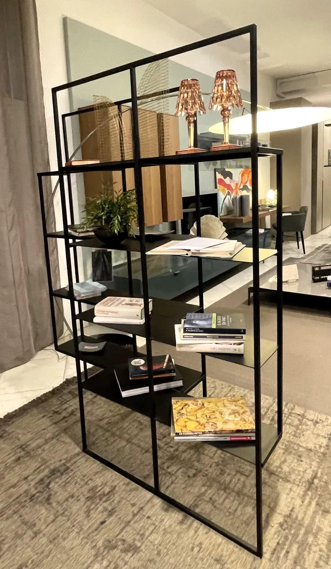 Perfetta come libreria moderna in metallo, divisorio leggero o elemento scenografico da parete, Optic unisce estetica e funzionalità in un equilibrio raffinato che si adatta a diversi stili abitativi.