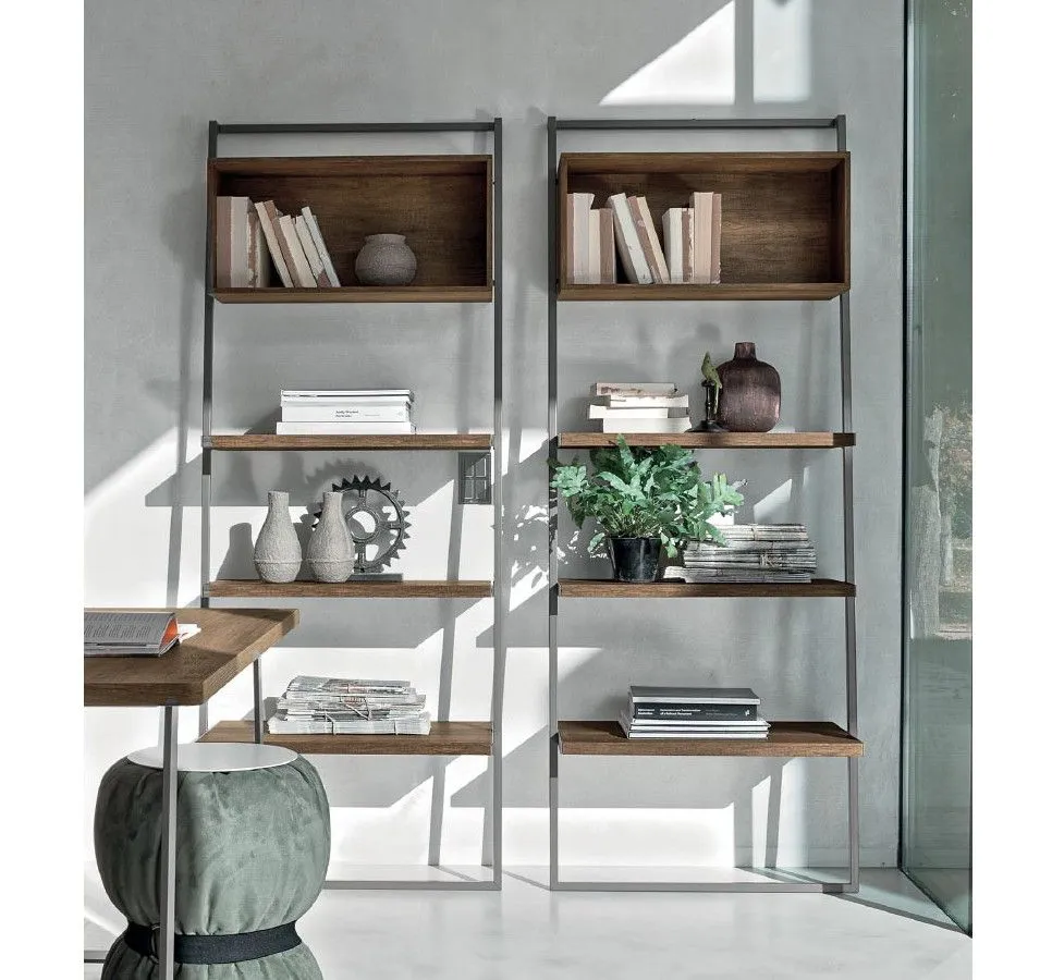 Particolare elemento singolo libreria da parete mod. MOVIDA, con struttura in metallo in finitura Antracite e con contenitore e ripiani in finitura materica colori a scelta campionario. La libreria ha le seguenti dimensioni: L 73,80, profondità 37,80 cm, altezza 190 cm. TRASPORTO E MONTAGGIO ESCLUSI.