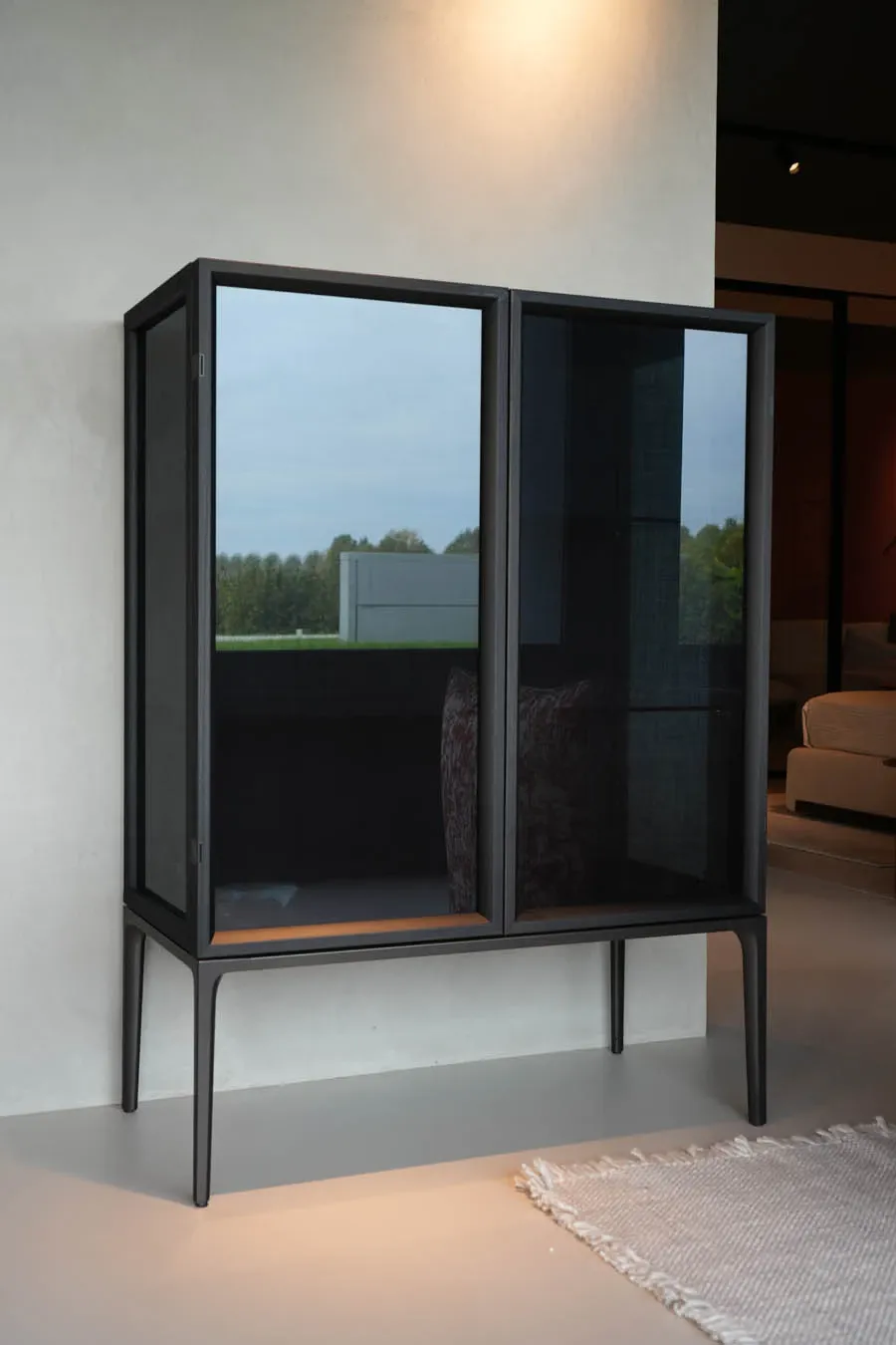 Aiko è una madia nata da un intuizione di Jean-Marie Massaud, nonché un compendio del sapere aziendale. Ispirata alle antiche credenze, la madia è sospesa su un basamento con piedini, tutt uno con le ante dai profili sagomati. L attenzione al dettaglio è massima, sia dal punto di vista tecnico sia da quello estetico, con ripiani che sembrano sospesi, cerniere sviluppate ad hoc e meccanismi che restano invisibili, come quello della ribalta. Preziose anche le finiture: dalle ante in essenza, anche effetto midollino, o in vetro stratificato con interno in tessuto effetto lino, al top in marmo che caratterizza la madia alta, ideale come mobile bar.