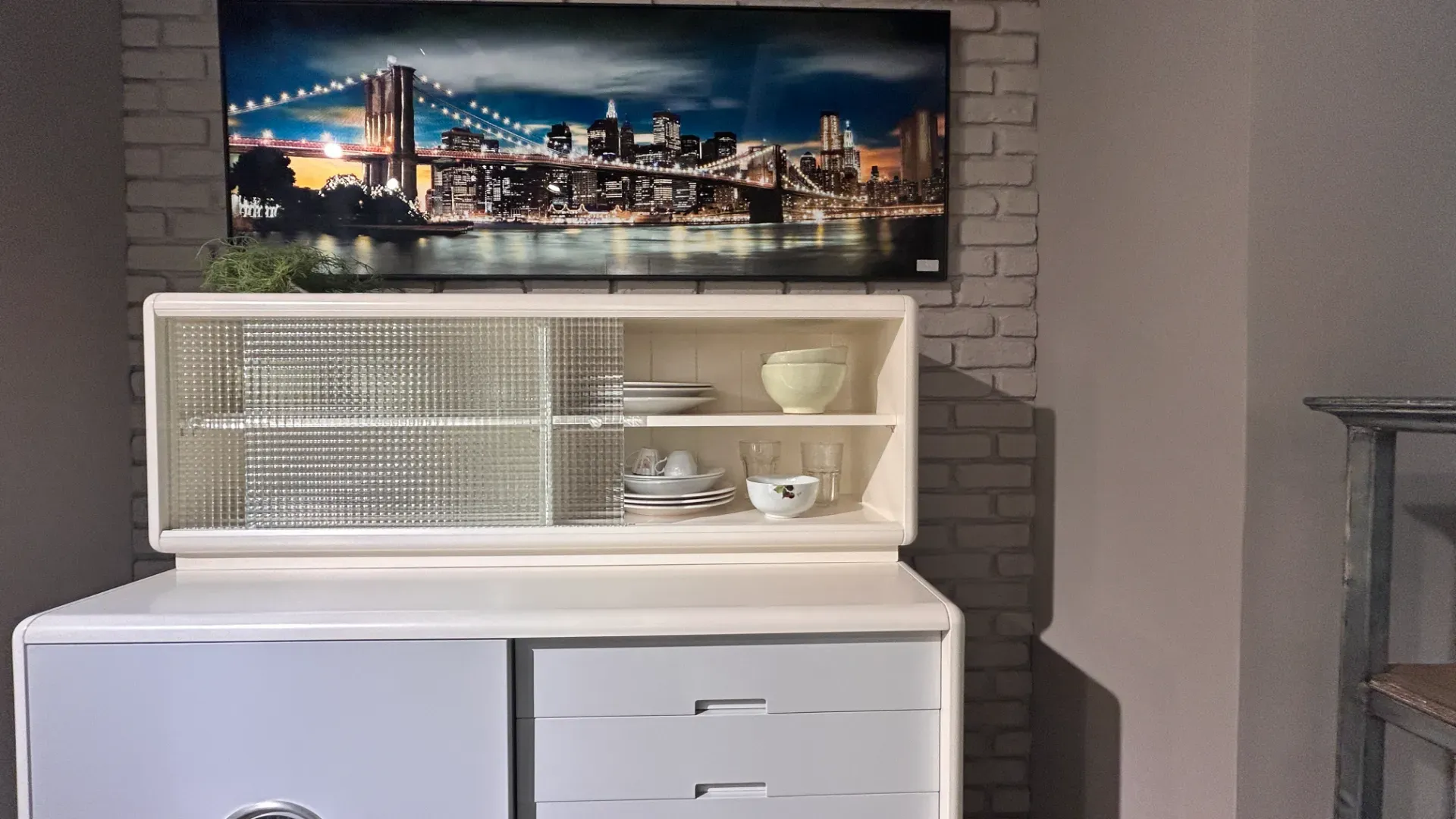 La madia modello Madia anni 50 qui visibile saprà completare il tuo living mettendo in risalto le doti estetiche dell'ambiente: questo mobile in legno ti consentirà di avere sempre a disposizione un piano d'appoggio plurifunzionale, esaltando contemporaneamente lo stile design del living.Scopri qualche dettaglio sul modello Madia anni 50