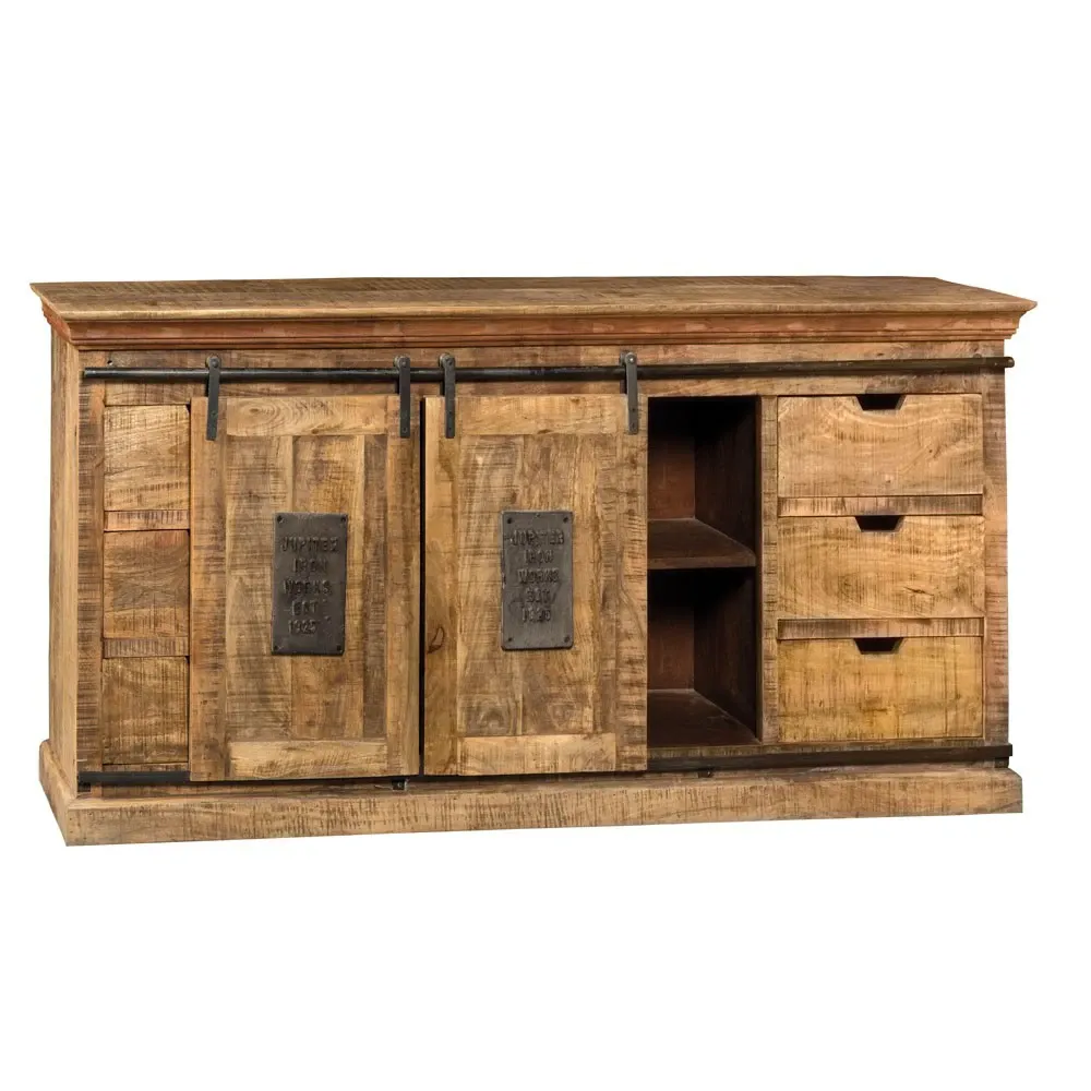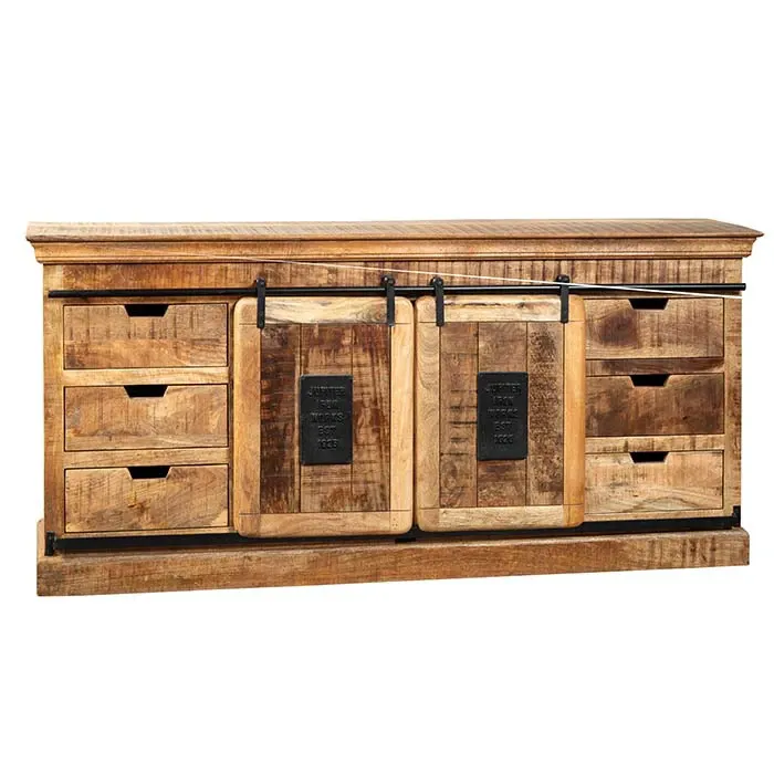 Credenza Newport 6 Css+2 AnteCredenza Newport 6 Css+2 Ante, in legno massello riciclato con 2 ante scorrevoli su asta in ferro + 6 cassetti con maniglie in metallo. Lo stile industrial con legni riciclati, vissuti e linee che si ispirano alle vecchie fabbriche Il legno di grande qualità selezionato e lavorato attentamente per questo mobile industrial , garantisce ottimi risultati dal lato della funzionalità, con un elevato contenuto estetico; questa soluzione è perfetta per essere integrata in ambienti di ogni genere,