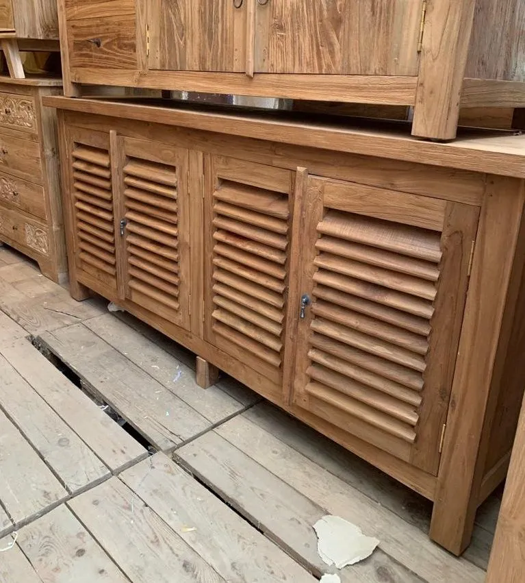 Credenza che ricrea un elegante atmosfera etnica in casa vostra. Prodotto artigianale indonesiano, realizzato interamente a mano in Teak massello.