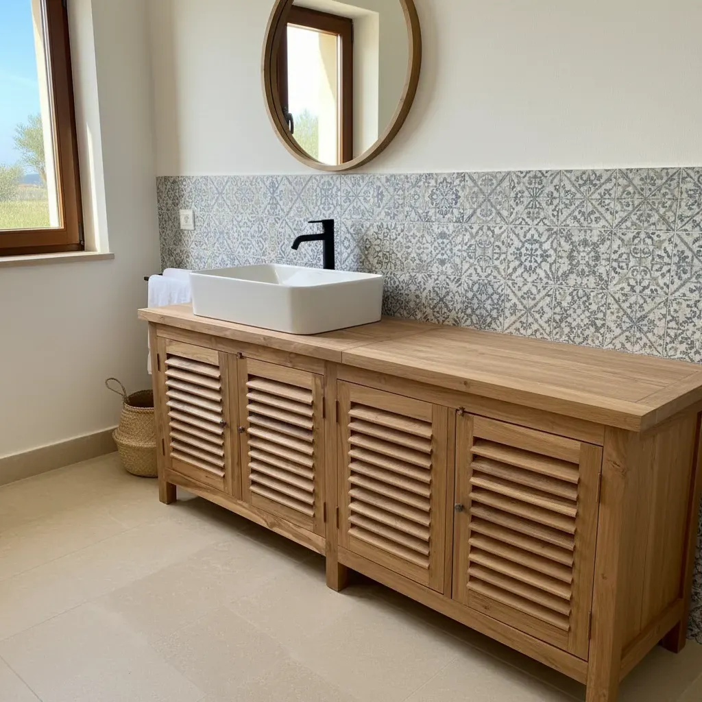 La madia Credenza teak riciclato 4a 180 cm nell'immagine è appartenente alla nostra linea di mobili e complementi con maniglia.
