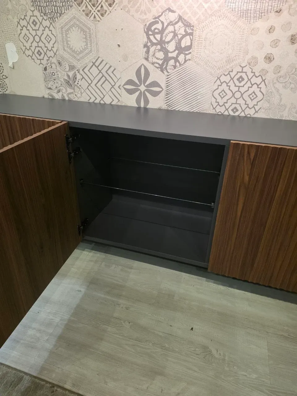 finitura: piedi e struttura antracite e ante noce cannettato