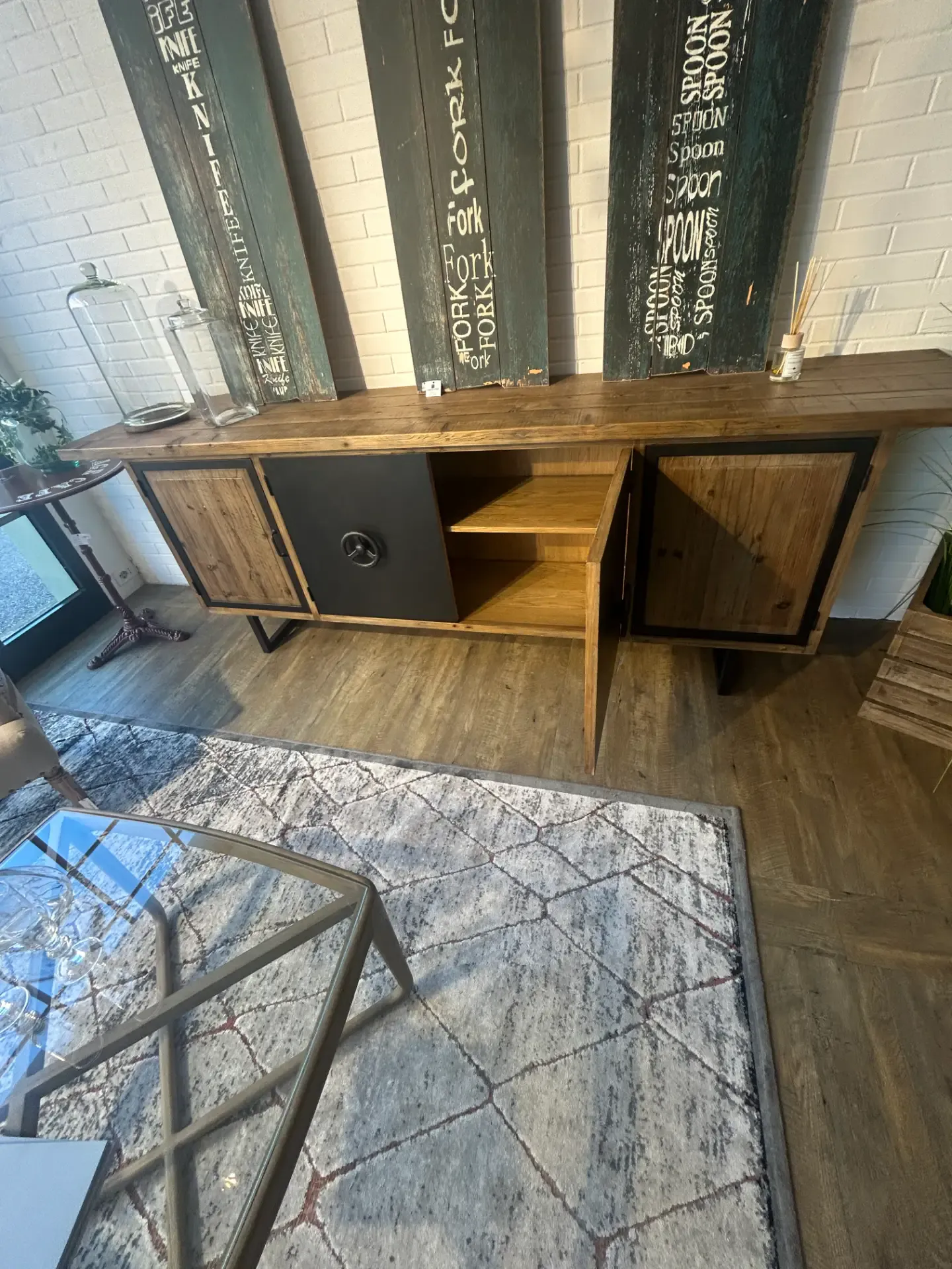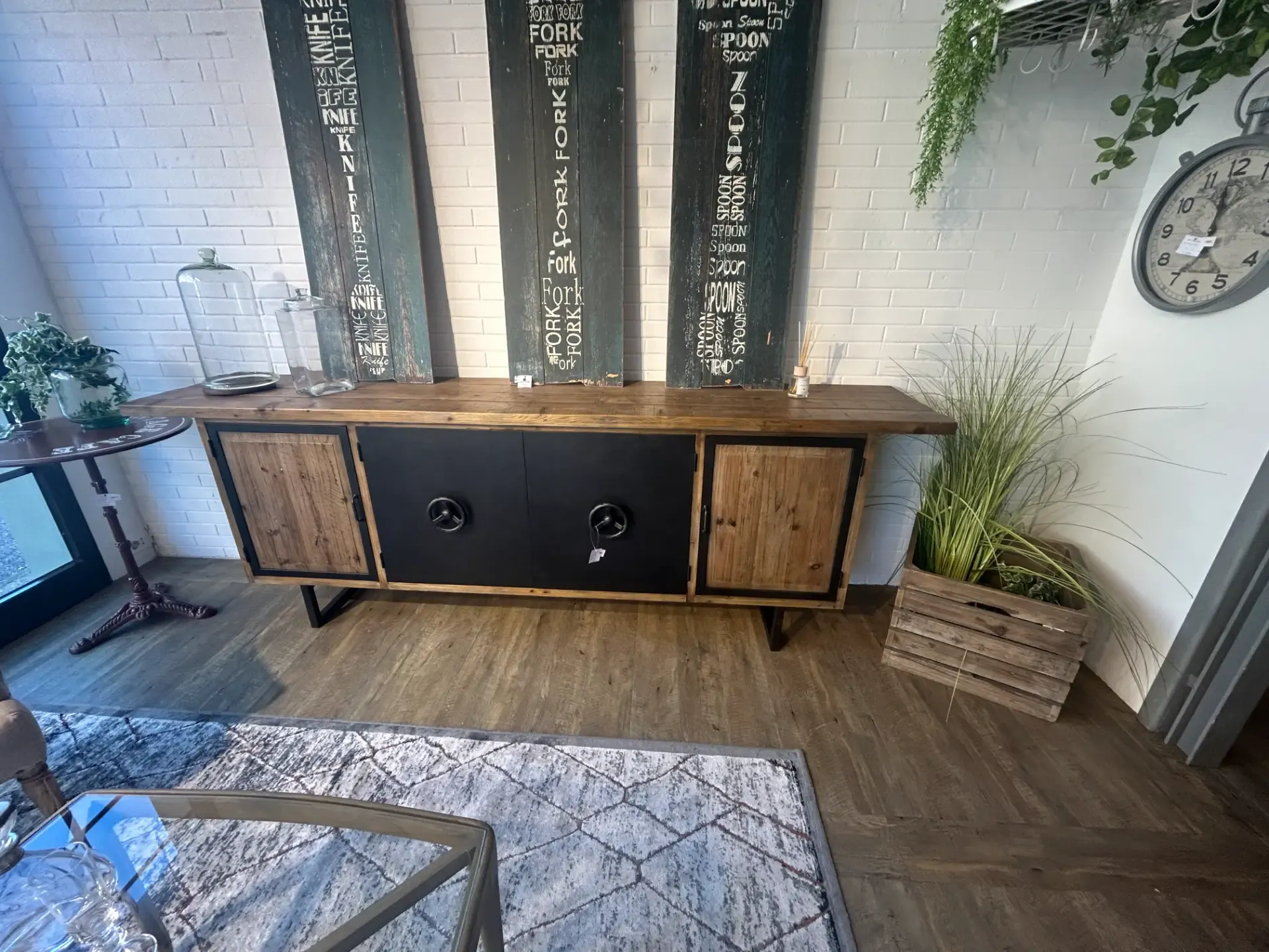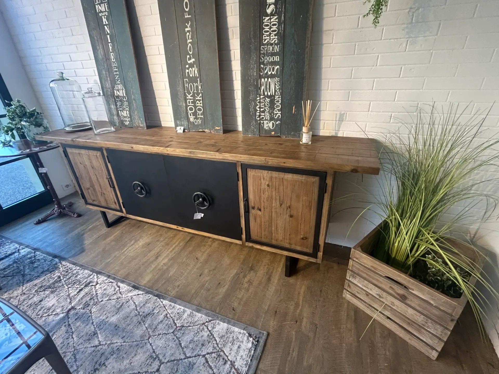 La madia Credenza metallo e legno nell'immagine è appartenente alla nostra linea di mobili e oggetti accessori con maniglia.