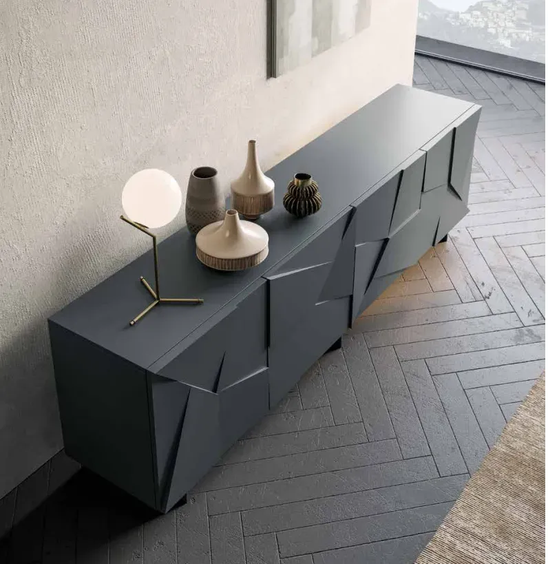 Forme decise e materiali pregiati: scopri la madia in laccato opaco qui visibile e potrai valorizzare il soggiorno.