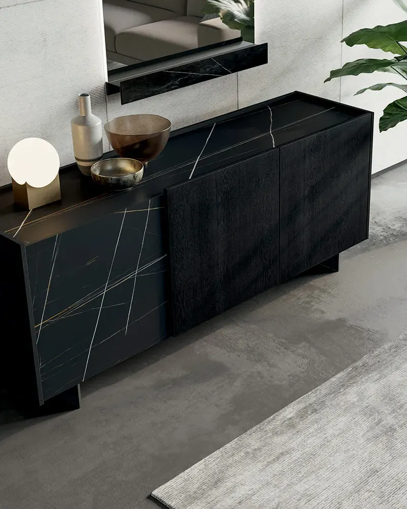 Arredodesign.eu propone a prezzi outlet l intera collezione Wrap di Dall'Agnese, una linea di madie che ridefinisce il concetto di contenimento attraverso un design asimmetrico e l'accostamento di materiali pregiati.