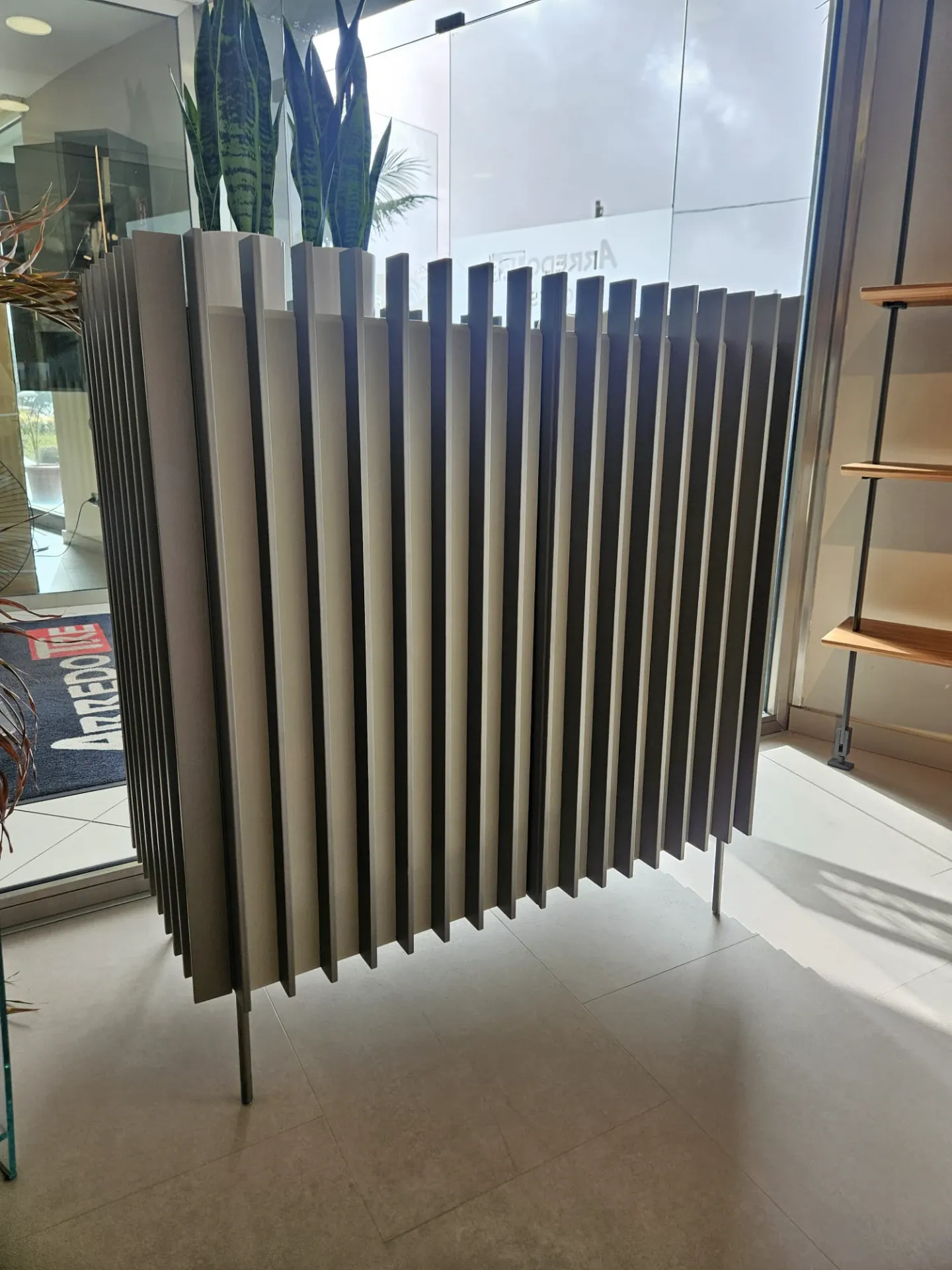 - Forme decise e materiali durevoli: scopri la madia in metallo qui presente e potrai arricchire il soggiorno.