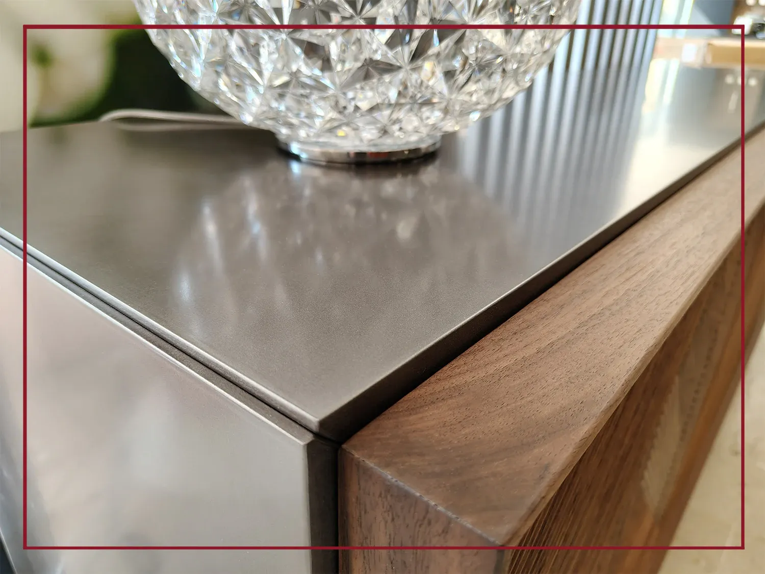 Legno finitura Noce con inserti in metallo verniciato finitura Piombo