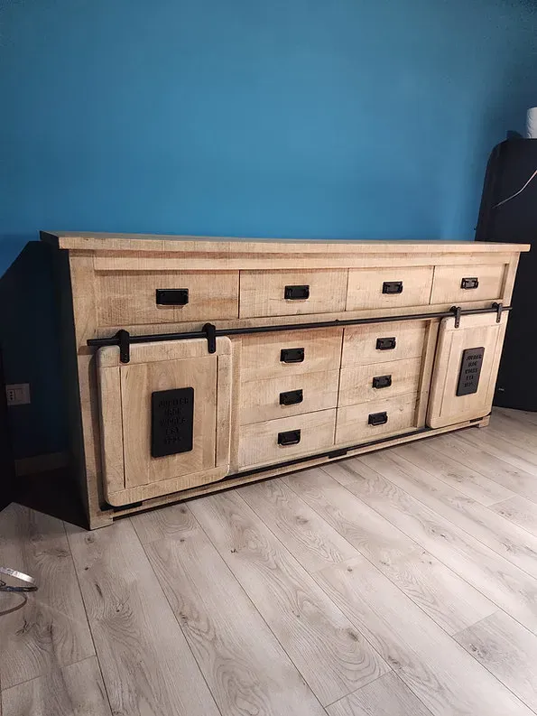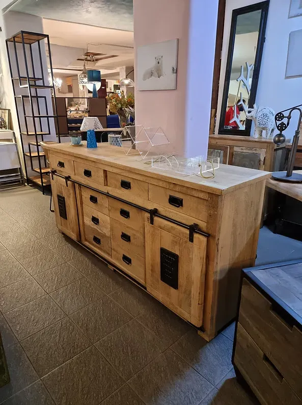 mobile credenza newport ante scorrevoli e cassetti modello jupiter industrial in offerta ATTENZIONE N ARRIVO X FINE GENNAIO 2022 EVENTUALMENTE CON ACCONTO SI PUO' PRENOTATRE INFO il mobile credenza jupiter maxi misura cm 200 per profondita cm 43 e altezza cm 90 Mobile credenza newport grande Credenza in legno massello con ante scorrevoli ripiani e cassetti, mobile robusto e molto capiente in stile vintage industrial. Note: La particolarità che rende questi mobili unici è nelle finiture e sfumature di colore, ogni pezzo è unico è normale che l aspetto dei colori possa essere leggermente diverso per ogni pezzo particolari targhe in ferro che si abbinano alle aprti in ferro old india factory per altre informazioni e spese di spedizione . ATTENZIONE N ARRIVO X FINE GENNAIO 2022 EVENTUALMENTE CON ACCONTO SI PUO' PRENOTARE