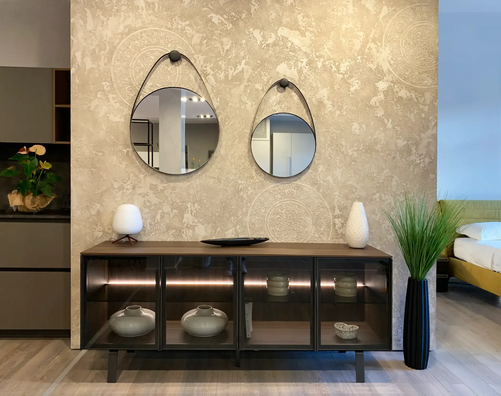I mobili ed elementi accessori per la zona giorno danno la possibilità di impreziosire lo spazio creando peculiari atmosfere: se desideri ricreare ambientazioni design, la madia nella fotografia è l’ideale.