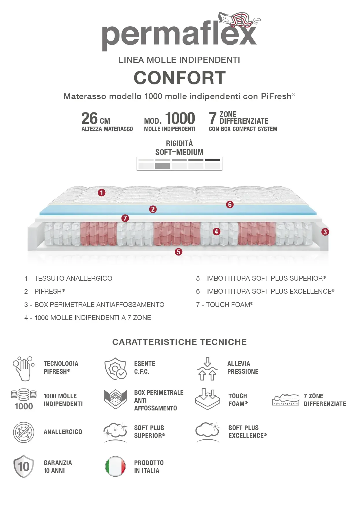 Per un sonno sempre totale e tranquillo scegli un materasso di grande valore come quello qui disponibile: che sia in lattice o in Memory Foam, a molle oppure a molle insacchettate con zone di differente portata, è sempre essenziale valutare quale tipologia di imbottitura fa al caso tuo. Per esempio, questo modello Materasso permaflex modello confort in Offerta Outlet Permaflex fa parte della linea di materassi molle.